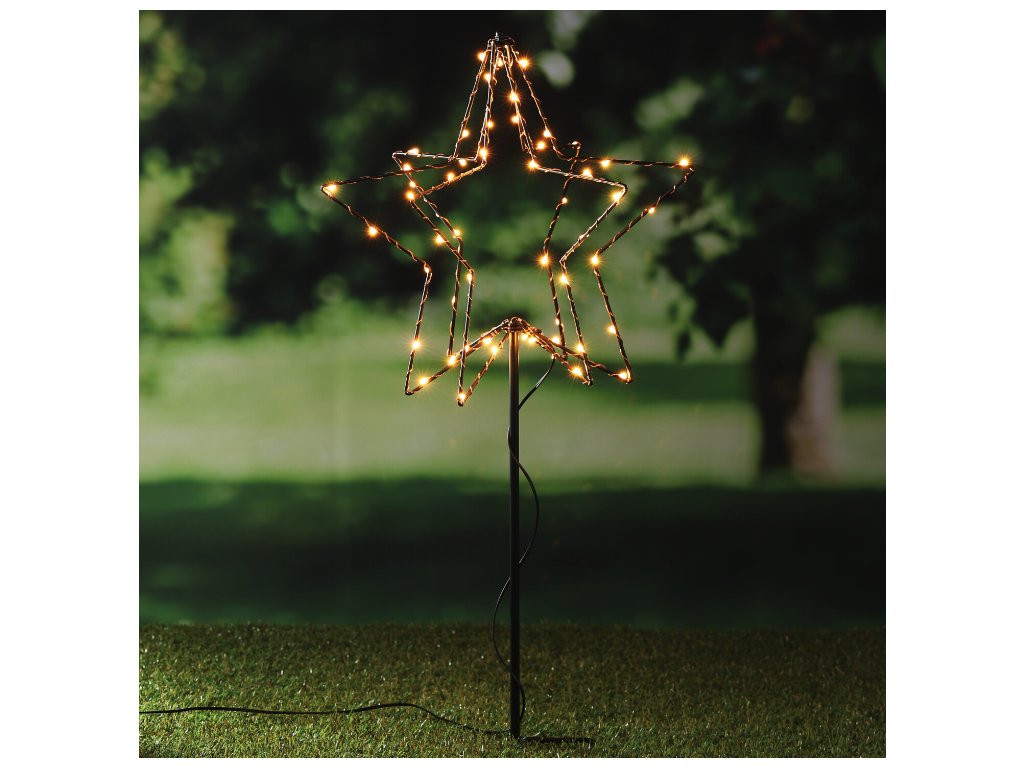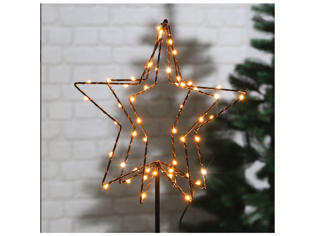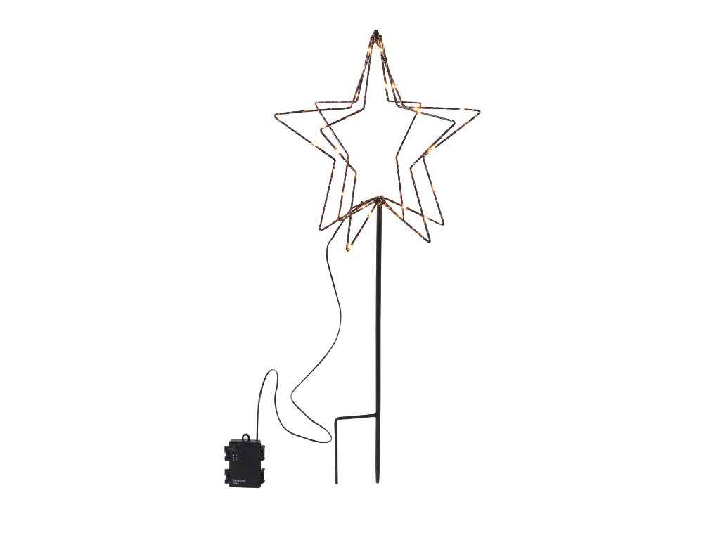 Tato kovová hvězda se zápichem vytvoří ve venkovním prostoru příjemnou sváteční atmosféru. Díky provozu na baterie (3x AA, nejsou součástí balení) ji můžete umístit kamkoliv bez nutnosti elektrického připojení. Má také časovač na 6 nebo 8 hodin a kabel dlouhý zhruba 1 metr.