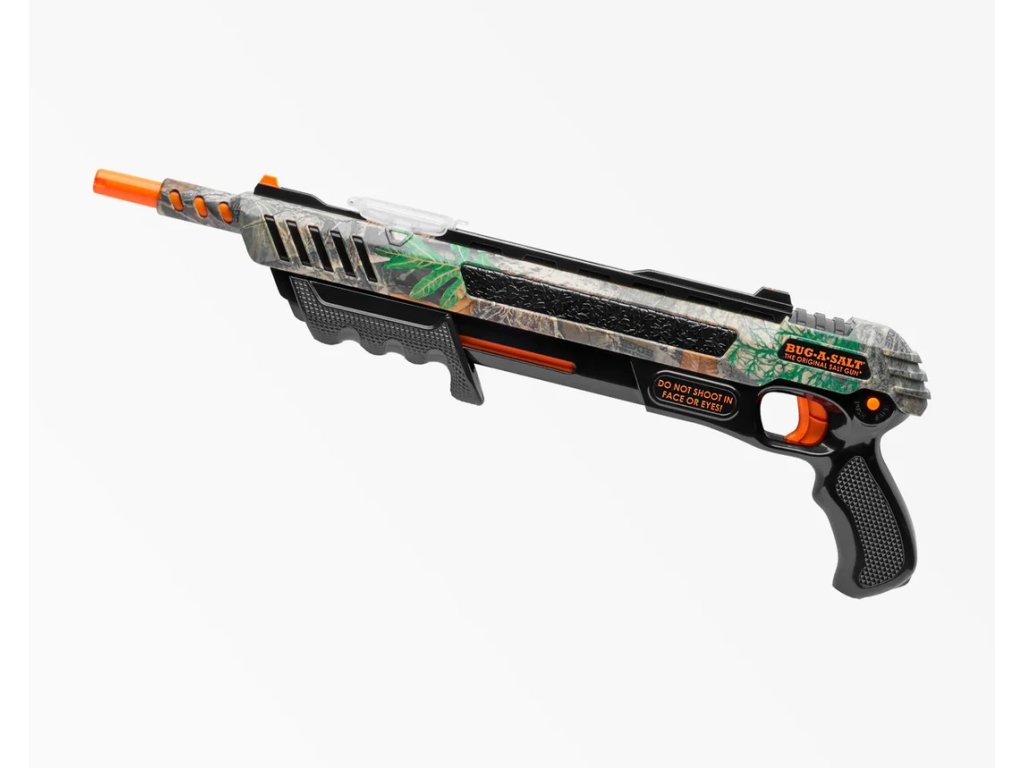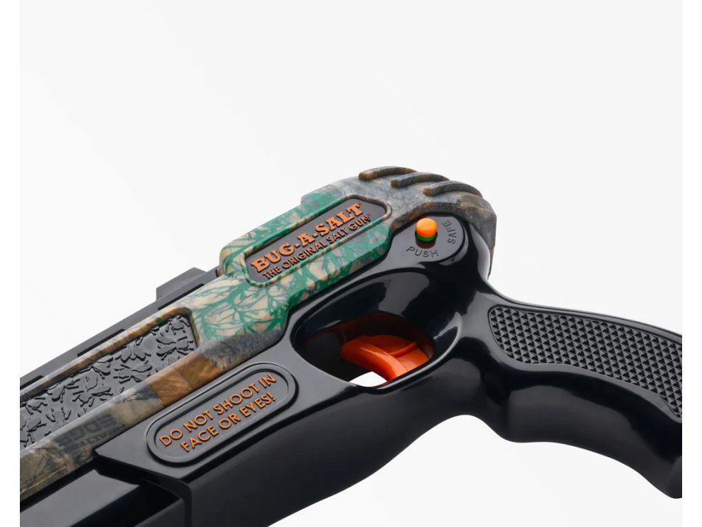 BugASalt 30 RealTree Camo je speciální limitovaná edice oblíbené zbraně na hubení hmyzu s oficiálním vzorem RealTree Edge Camo. Tato zbraň nepotřebuje baterie ani toxické spreje a používá běžnou kuchyňskou sůl k okamžité eliminaci much švábů a komárů. Model 30 nabízí několik vylepšení jako je nová křížová bezpečnostní pojistka přepracovaný spoušťový mechanismus a zaměřovač Patridge pro zvýšenou přesnost a lepší šanci na zasažení hmyzu za letu.