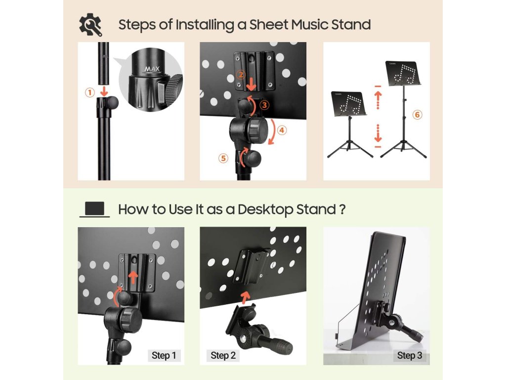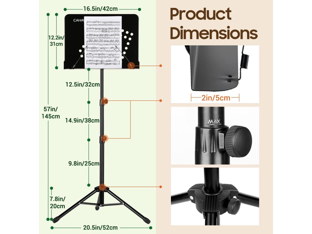 CAHAYA Přenosný stojan na noty 3 v 1 nastavitelný černý