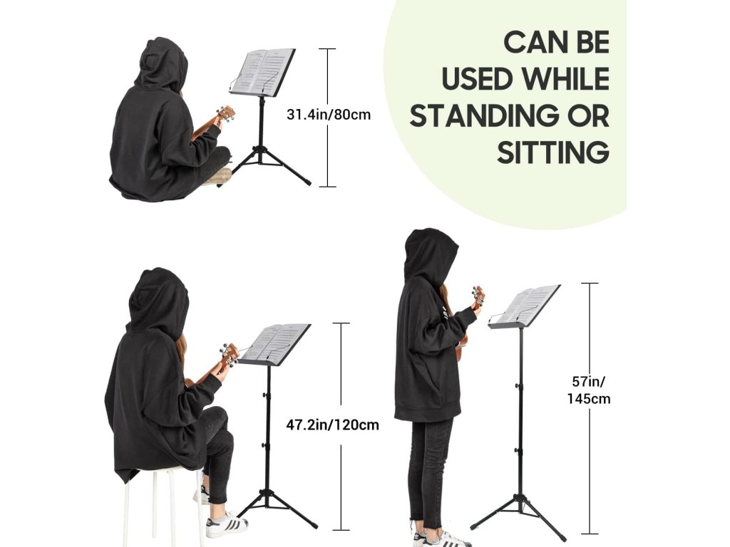 Konstrukce stojanu umožňuje plynulé nastavení výšky v rozmezí 80 až 142 cm, což je ideální pro hru vsedě i vestoje. Sklon horní desky lze měnit až o 180 stupňů pro dosažení optimálního úhlu pohledu.