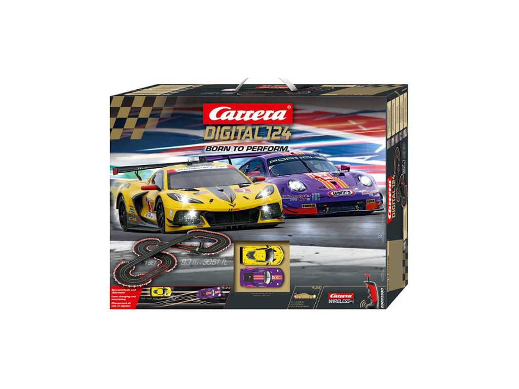 Carrera Digital 124 Born to Perform je špičková digitální autodráha, která přináší realistický závodní zážitek díky detailním autům v měřítku 1:24 a pokročilým funkcím. Autodráha je kompatibilní s širokou nabídkou příslušenství řad EVOLUTION a Digital 124.