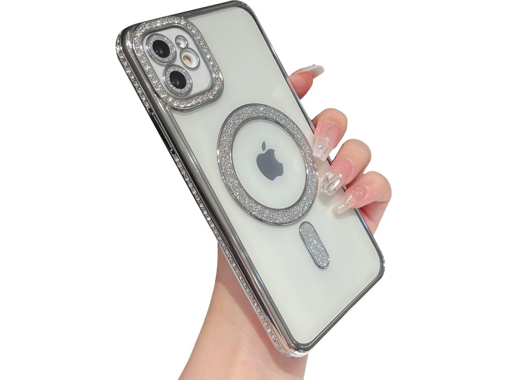 Caseative pouzdro, iPhone 12, MagSafe, třpytivé, stříbrné, bezdrátové nabíjení