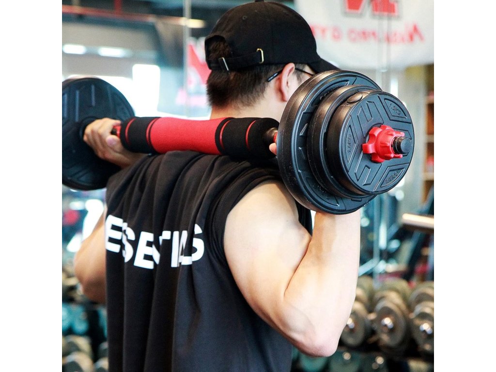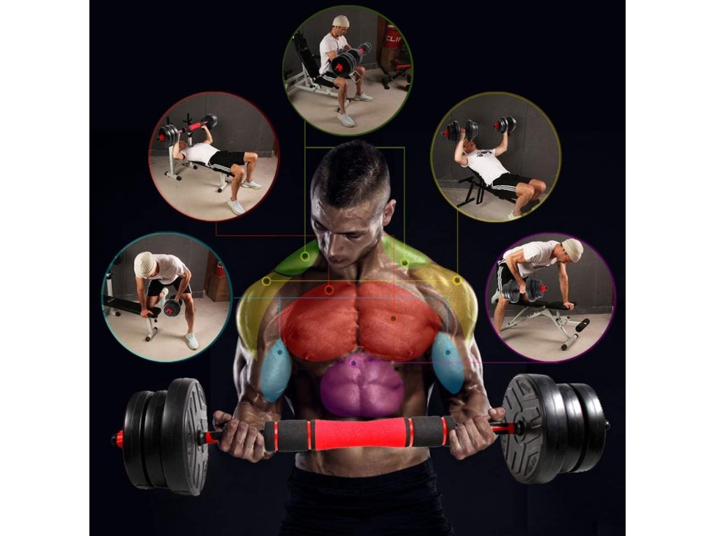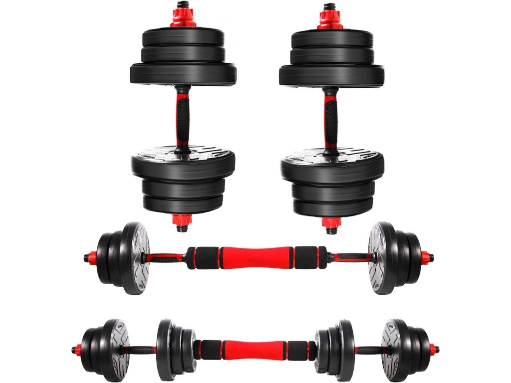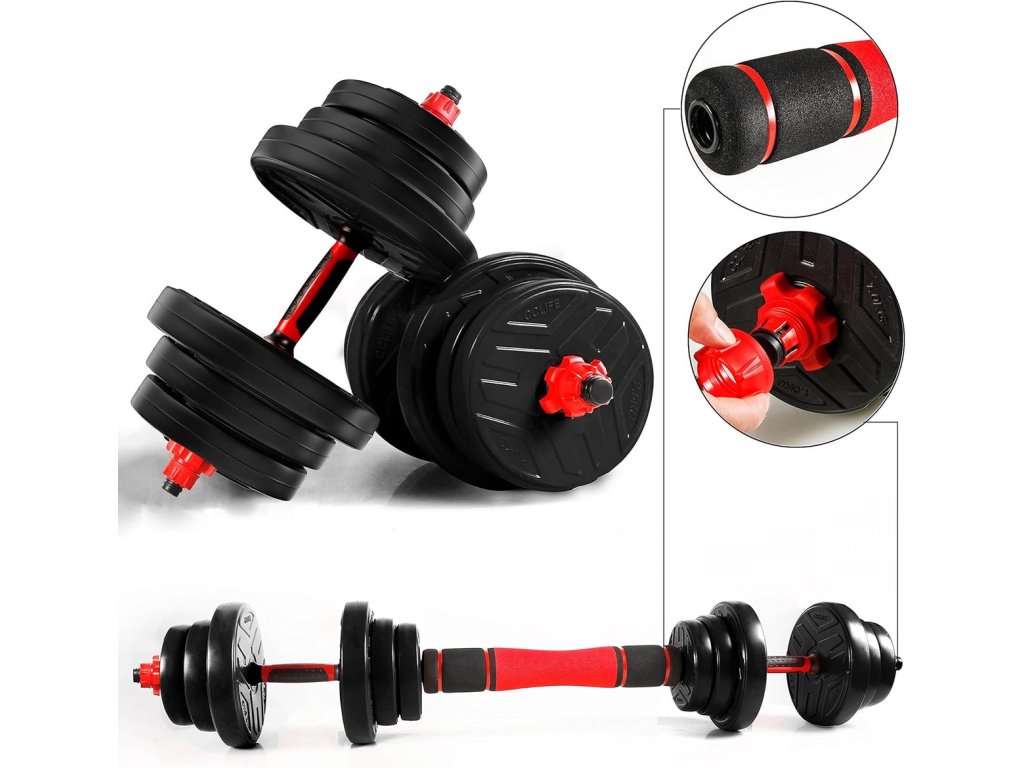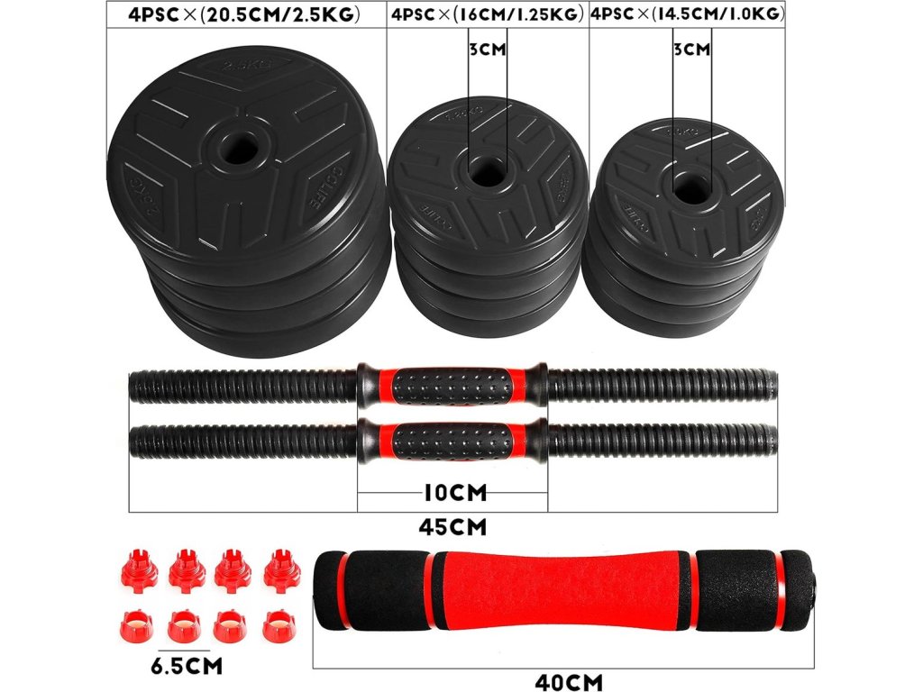 CCLIFE 2v1 sada činek 20/30 kg s propojovací tyčí. Nastavitelné, ergonomické, bezpečné uzávěry.