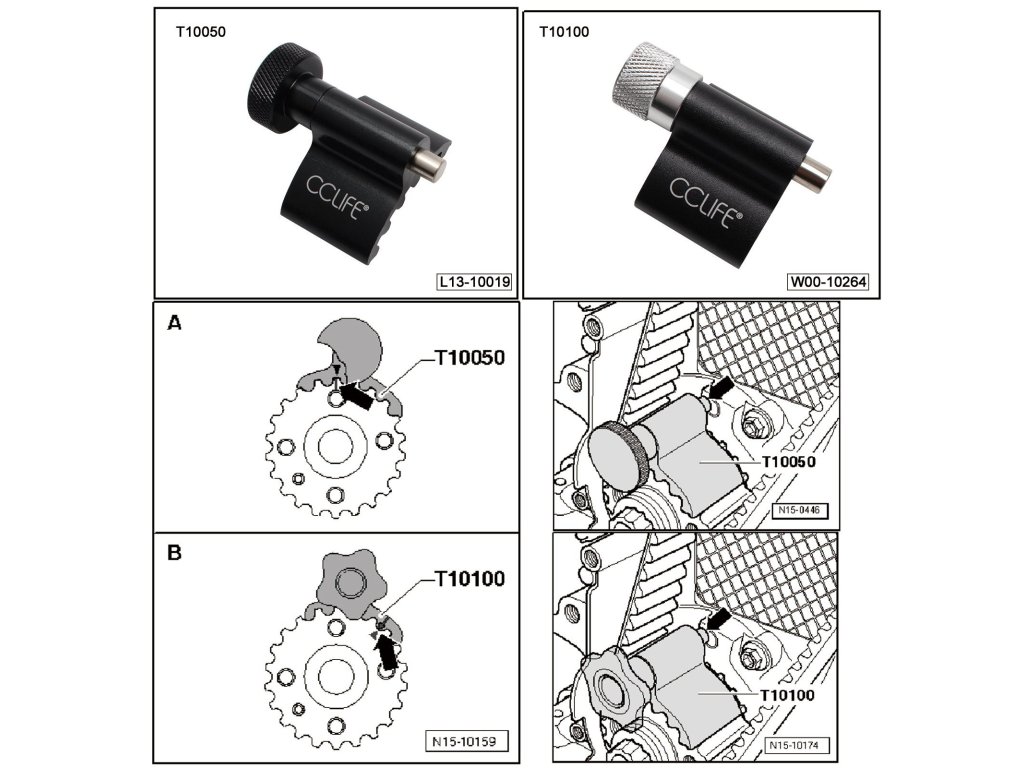 Tato sada nářadí CCLIFE je speciálně navržena pro seřízení a kontrolu časování motorů VAG při výměně rozvodového řemene, vačkové hřídele a dalších souvisejících pracích. Je kompatibilní s širokou škálou vozidel koncernu VAG s motory o objemu 1.2, 1.4, 1.6, 1.9 a 2.0 SDI/TDI. Sada obsahuje nástroje odpovídající OEM číslům T10050, T10100, 3359/T20102, T10115 a T10060A.