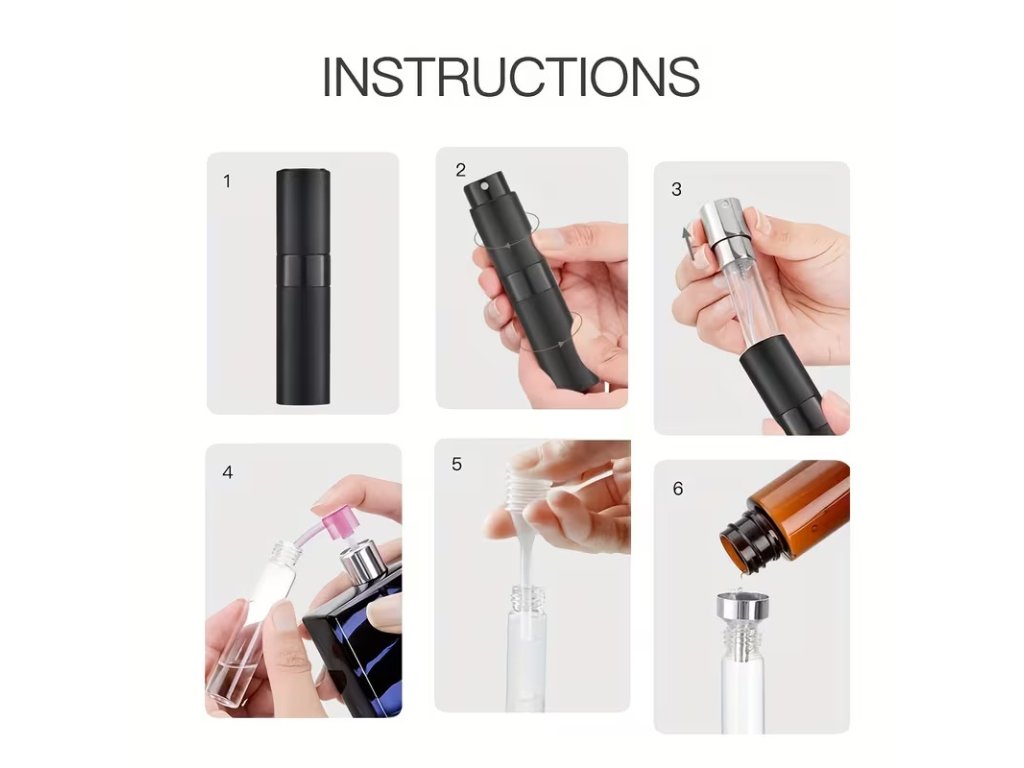 Cestovní parfémová lahvička 8 ml je navržena tak, aby byla malá, lehká a snadno použitelná. Díky praktickému rozprašovači můžete parfém aplikovat pohodlně a přesně, aniž byste se museli obávat rozlití. Lahvička je doplnitelná, takže ji můžete znovu použít s oblíbenou vůní nebo kolínskou vodou.