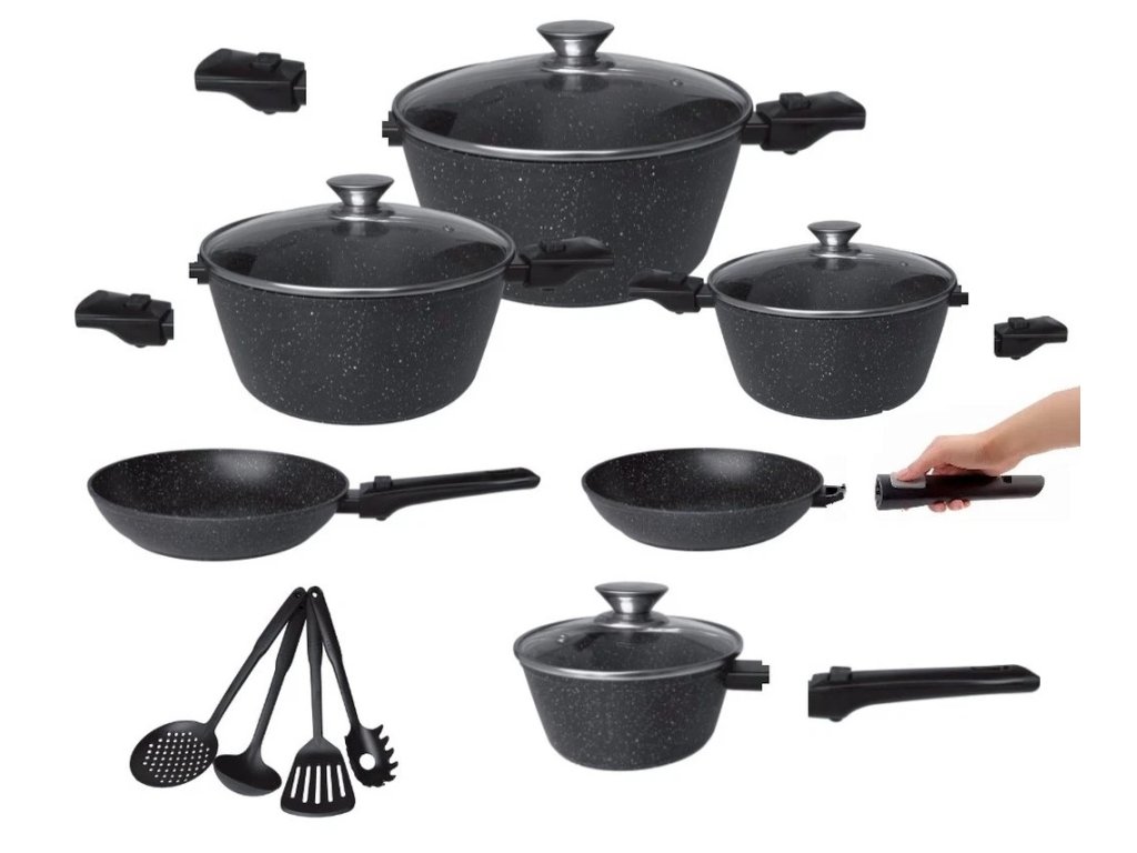 Cheffinger XXL 14 dílná sada nádobí a pánví z litého hliníku