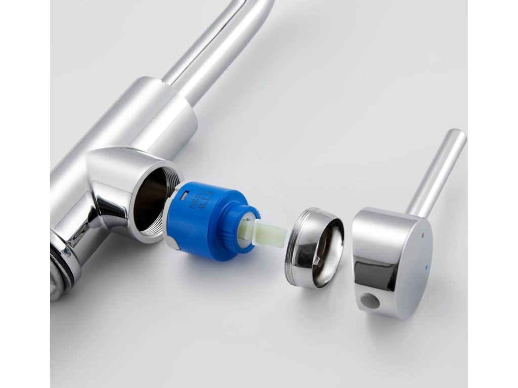 Tato vysoce kvalitní chromovaná umyvadlová baterie je vyrobena z odolné nerezové oceli 304, která zaručuje dlouhou životnost a odolnost proti poškození. Díky 360° otočnému výtoku je baterie flexibilní a vhodná pro různá umyvadla. Lze ji nainstalovat s vývodem vlevo nebo vpravo podle vašich preferencí. Baterie je vybavena perlátorem z ABS se vstřikováním vzduchu, který zajišťuje měkký proud vody bez stříkání a zároveň snižuje spotřebu vody až o 40 %. Jednopáková rukojeť s vysoce výkonným keramickým ventilem umožňuje snadné a plynulé ovládání teploty teplé a studené vody i průtoku. Instalace je snadná díky standardním přípojkám 3/8" a není potřeba volat instalatéra.