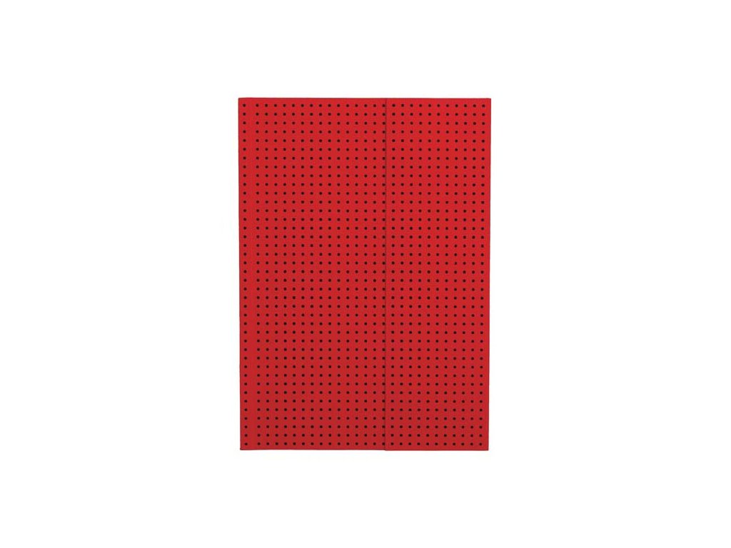 Linkovaný sešit Circulo ve formátu A5 má červenou tečkovanou obálku na černém základu. Má 112 stran a flexibilní vazbu, která umožňuje otevření naplocho.