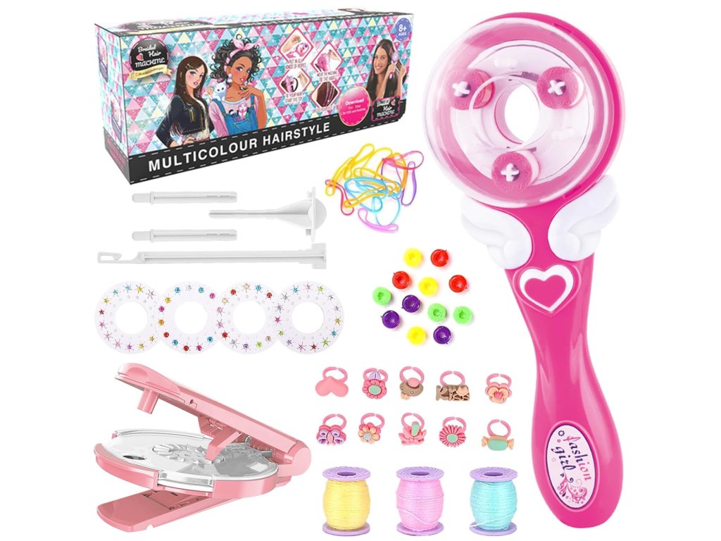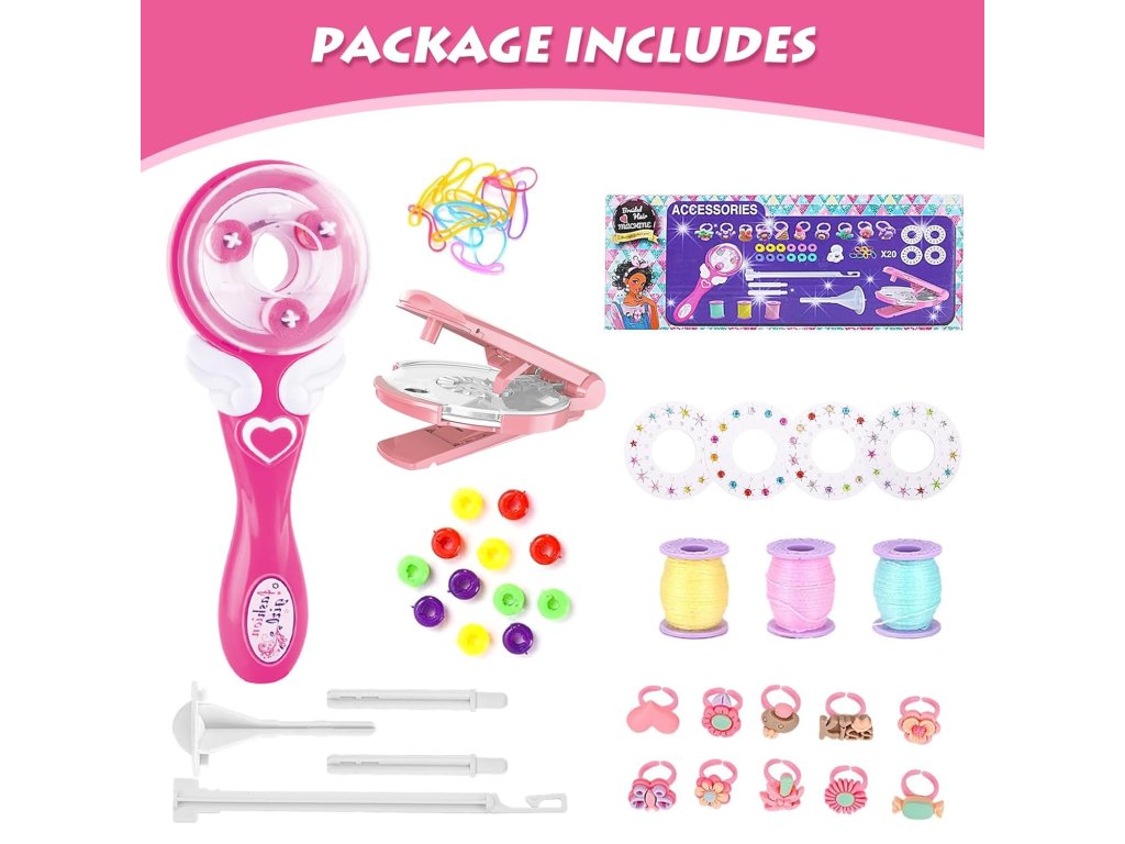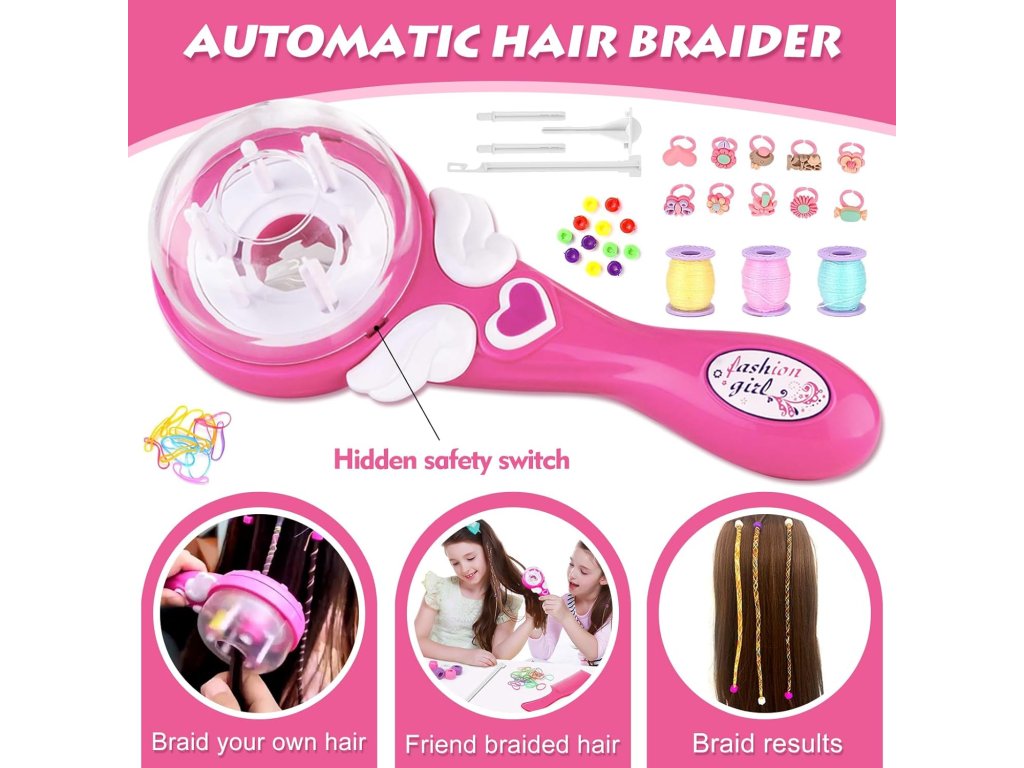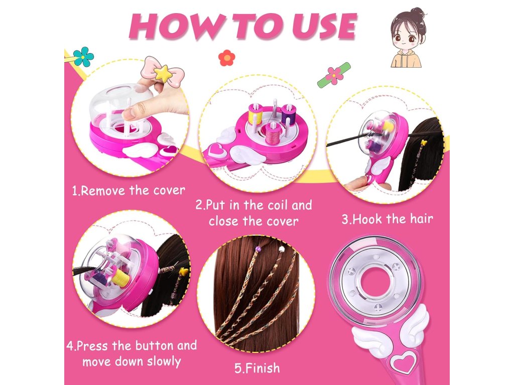 S touto sadou se každá dívka může proměnit v princeznu. Pomocí automatického zaplétače vytvoříte během chvilky krásné barevné copánky. Strojek je navržen tak, aby omotal barevné nitě kolem pramenu vlasů, a vytvořil tak efektní účes. Aplikátor kamínků vám zase umožní přidat třpyt do vlasů nebo třeba ozdobit tašku, boty či oblečení.
