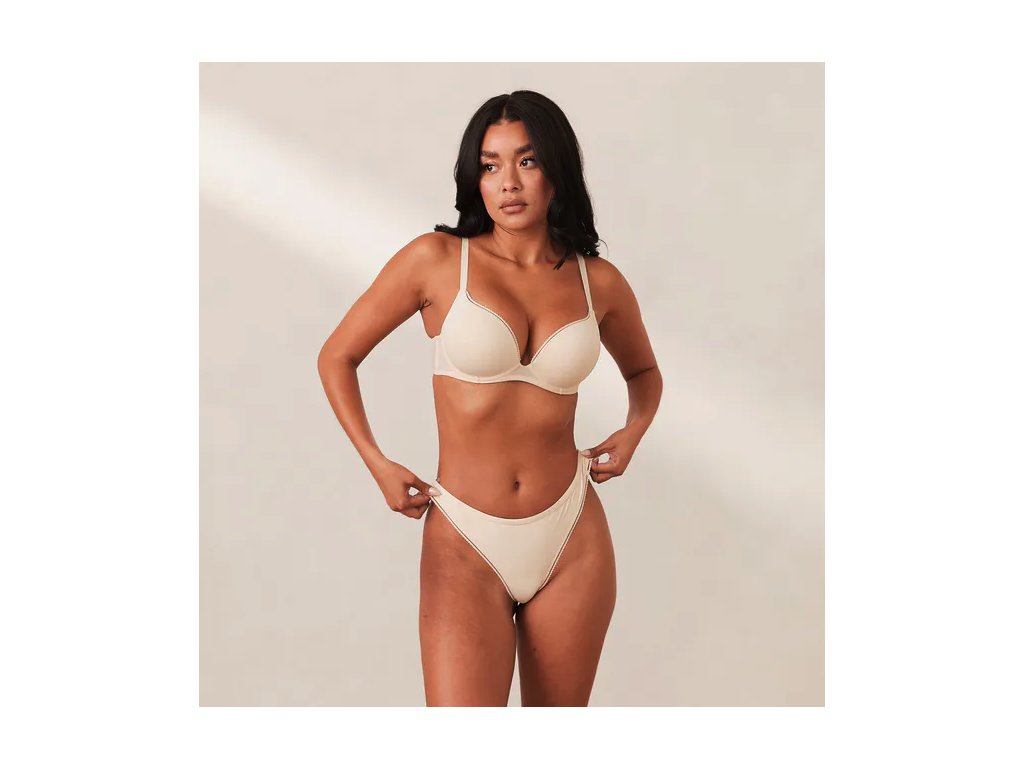 Materiálové složení s převahou recyklovaného polyamidu zaručuje hedvábný dotek na pokožce a vysokou elasticitu pro optimální přizpůsobení postavě. Nastavitelná ramínka a měkké zapínání přispívají k vysokému standardu pohodlí, zatímco barva latte působí diskrétně a sofistikovaně.