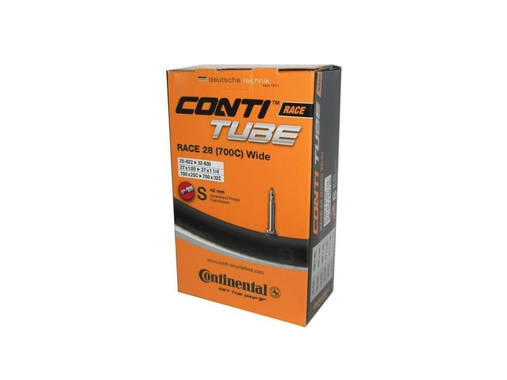 Continental duše Race 28 Wide je tréninková duše pro silniční kola s rozměrem 700x25/32C a galuskovým ventilkem (FV) o délce 60 mm. Je vyrobena s širší stěnou pro vyšší odolnost proti defektu a váží 125 g.