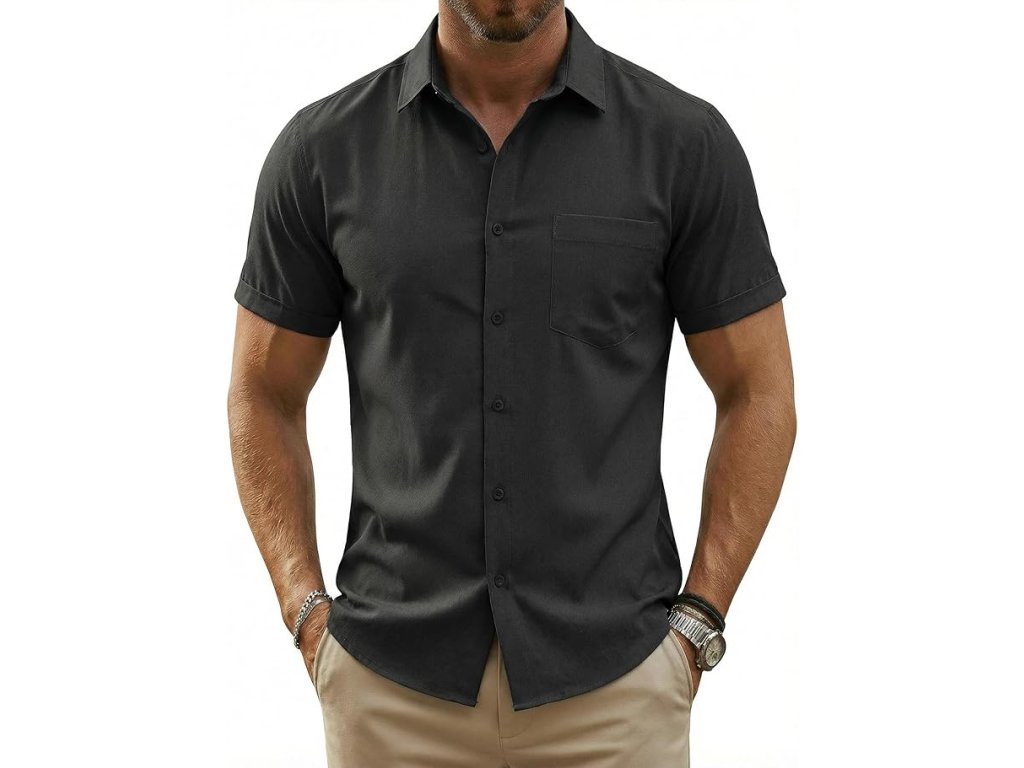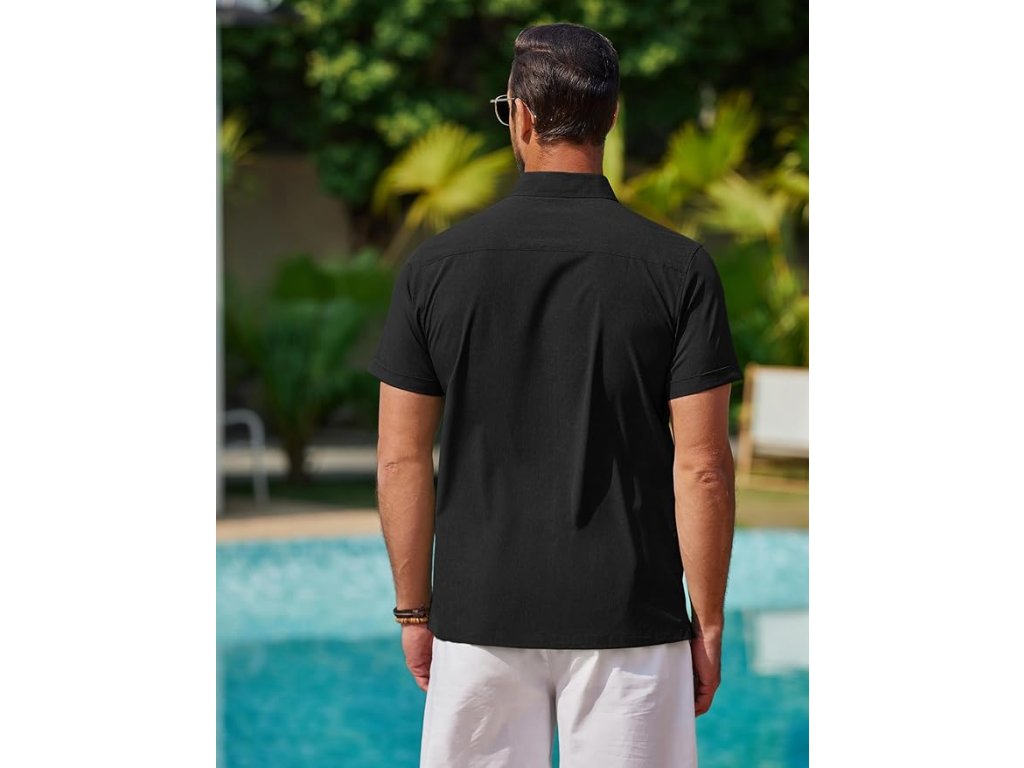 COOFANDY Pánská košile s krátkým rukávem M – černá