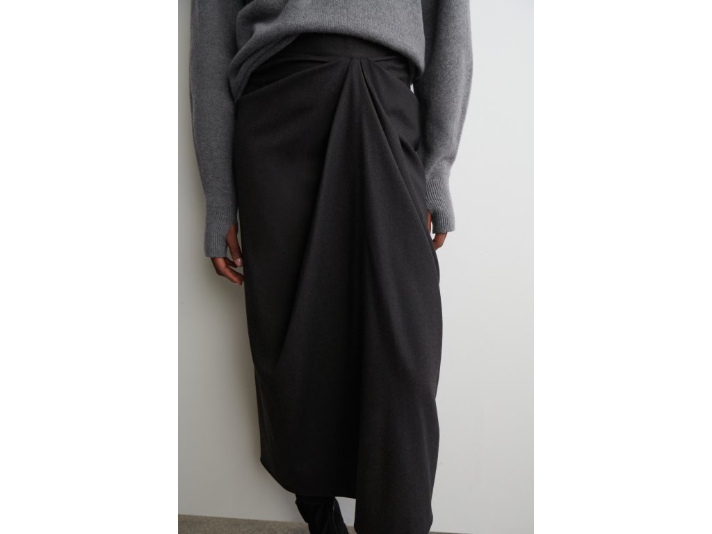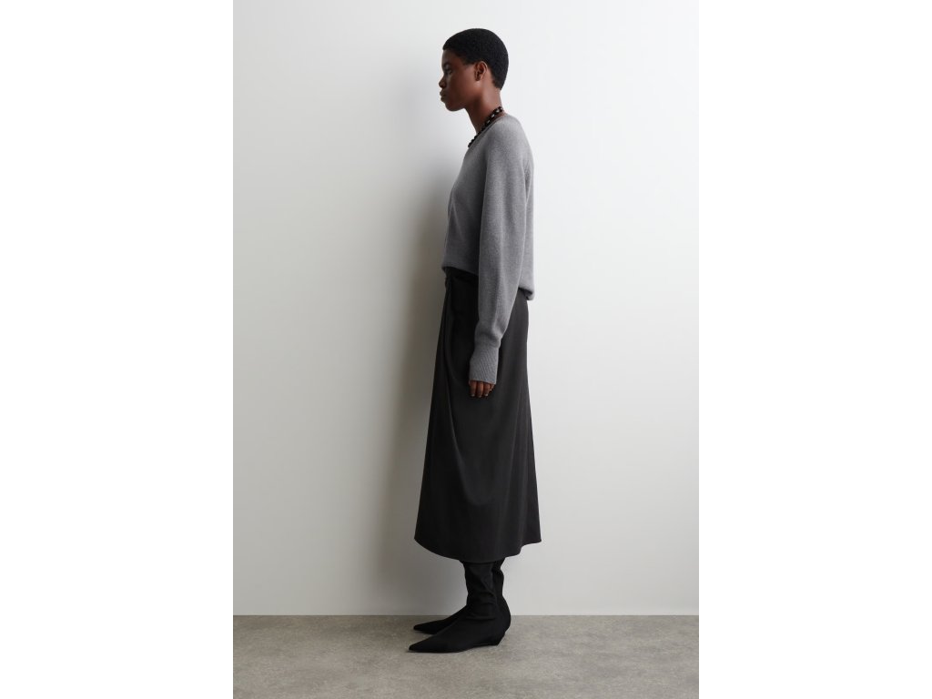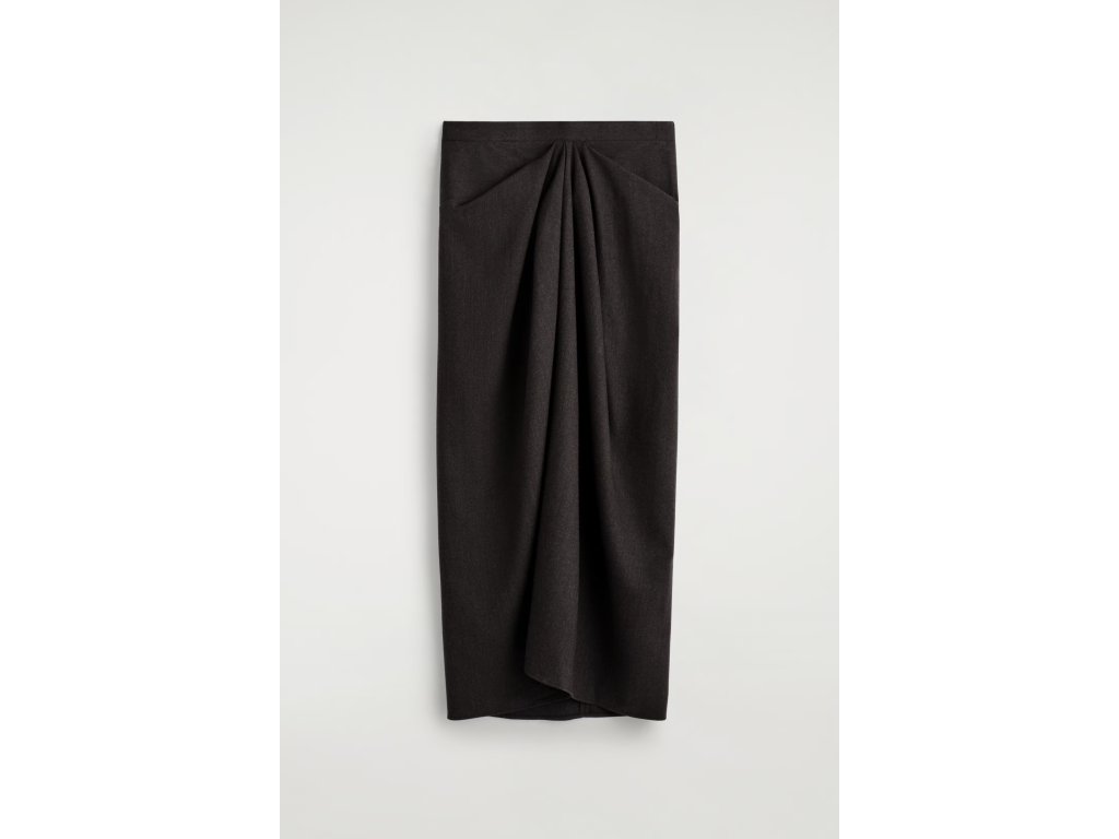 COS Draped Wool-Blend Midi Skirt – antracitová (vel. 38)