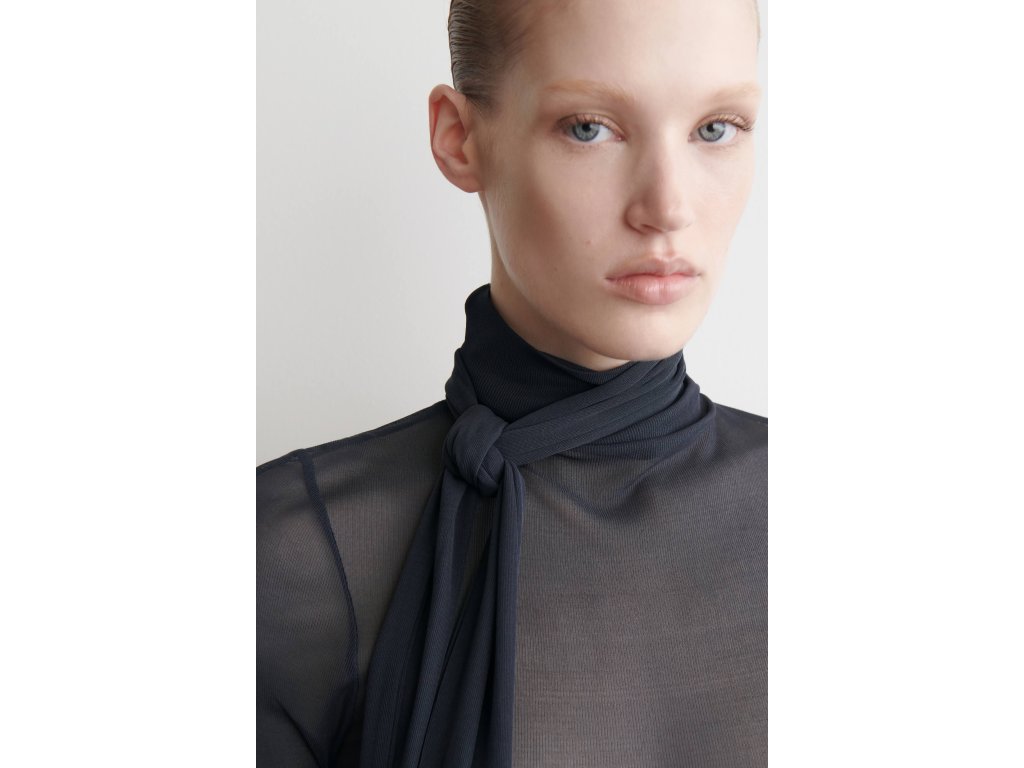 Rafinovaný dámský top COS je vyroben z 100% morušového hedvábí, které je lehké, jemné a příjemné na dotek. Materiál vytváří luxusní lehce poloprůhledný efekt, díky kterému působí top velmi elegantně.