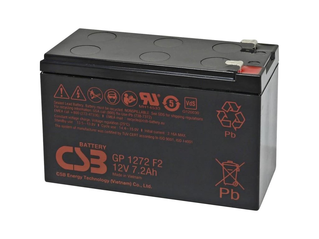 Olověný akumulátor CSB GP 1272 Standby USV je robustní a spolehlivé řešení navržené pro aplikace vyžadující záložní napájení. Jedná se o bezúdržbový akumulátor s technologií olověného skelného rouna (VRLA), který nabízí vysokou spolehlivost a dlouhou životnost až 5 let. Akumulátor je nehořlavý podle normy UL 94 V-0 a testován podle UL1989, což zajišťuje zvýšenou bezpečnost.S napětím 12 V a kapacitou 7.2 Ah je tento akumulátor ideální pro použití v UPS zařízeních, nouzovém osvětlení, telekomunikačních systémech, nouzových přístrojích a mnoha dalších aplikacích v režimu stand-by. Díky svým vlastnostem je bezúdržbový, nevytéká a má izolované těsnění. Lze jej použít nezávisle na poloze.