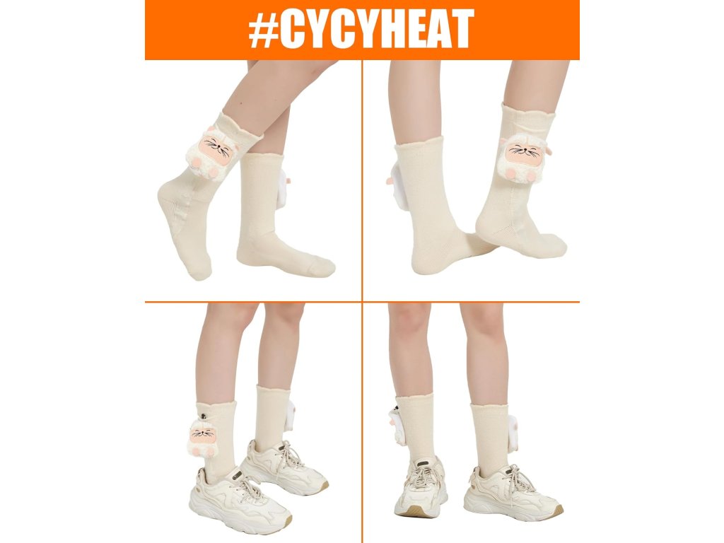 Vyhřívané ponožky CYCYHEAT jsou ideální pro všechny, kdo chtějí udržet nohy v teple během chladných dní. Díky integrovanému topnému systému se třemi úrovněmi nastavení teploty poskytují příjemné a stabilní zahřátí.