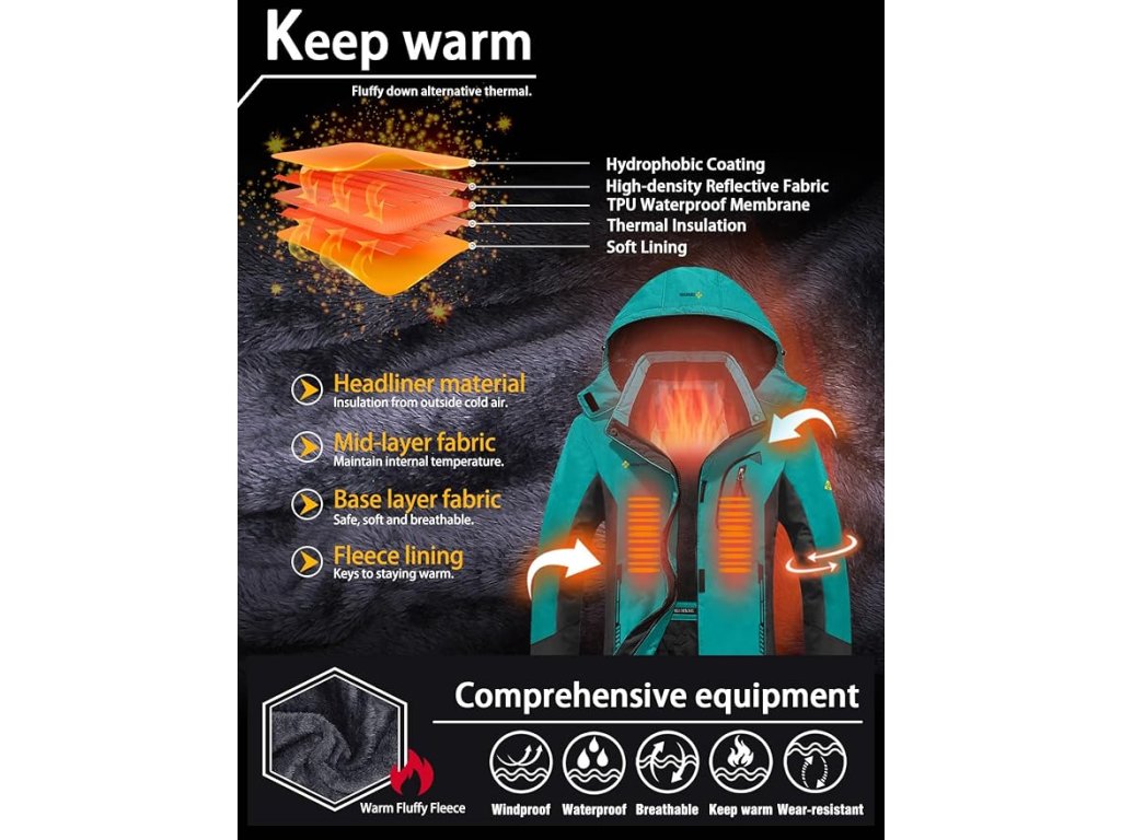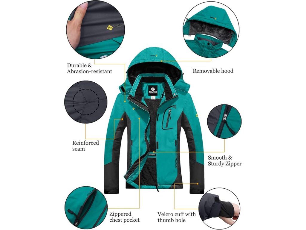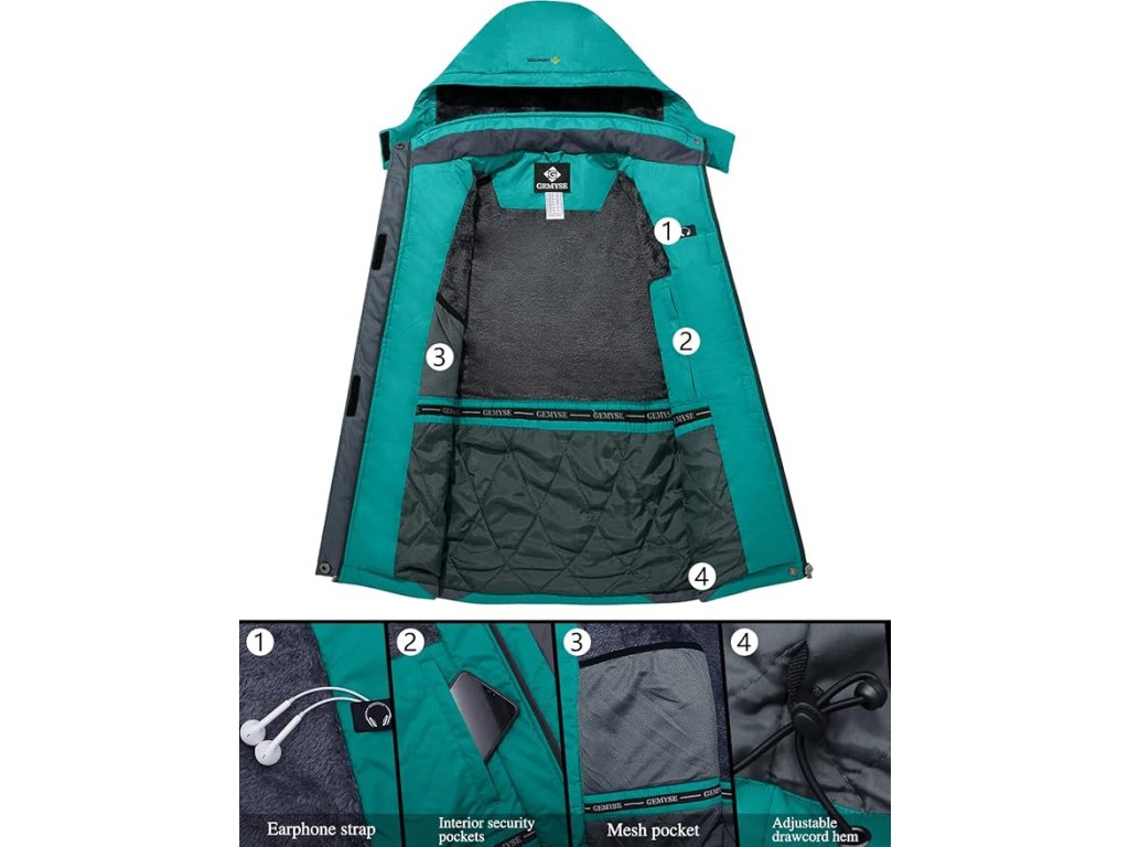 Dámská nepromokavá lyžařská bunda GEMYSE s kapucí. Větruodolná, zateplená fleecem, ideální pro zimní outdoorové aktivity.