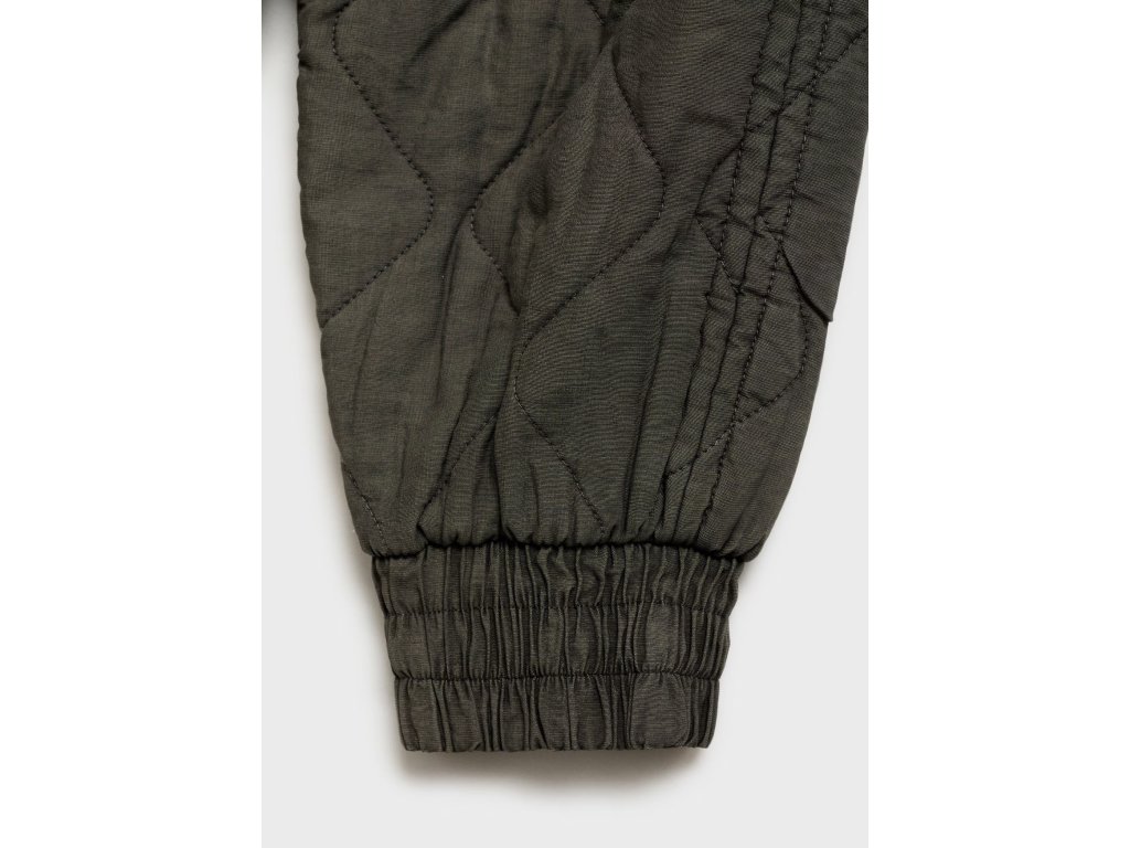 Bunda má prošívaný design, který dodává moderní vzhled a zároveň zajišťuje příjemný tepelný komfort. Bomber střih doplňuje vysoký límec a dlouhé rukávy pro lepší ochranu před chladem.