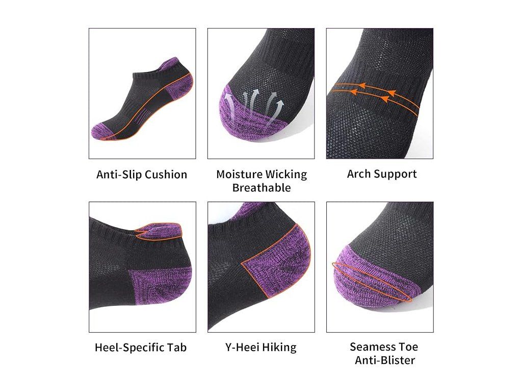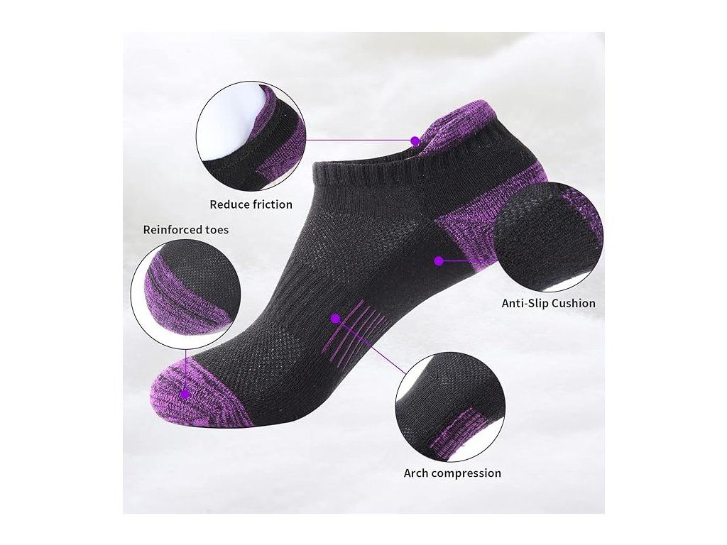 Speciální podpora klenby pomáhá lepší stabilitě chodidla a minimalizuje sklouzávání ponožek během sportu. Nízký střih je ideální do tenisek a sportovní obuvi.