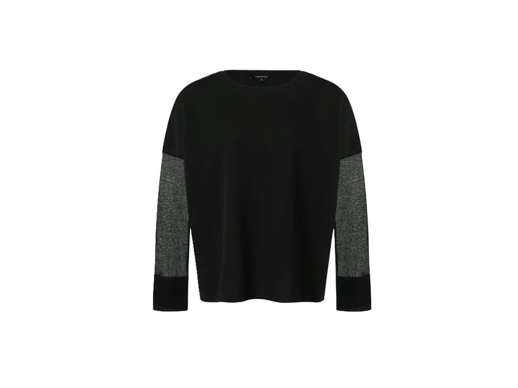 Dámský pletený svetr COMMA s transparentními rukávy šedo-černý velikost M