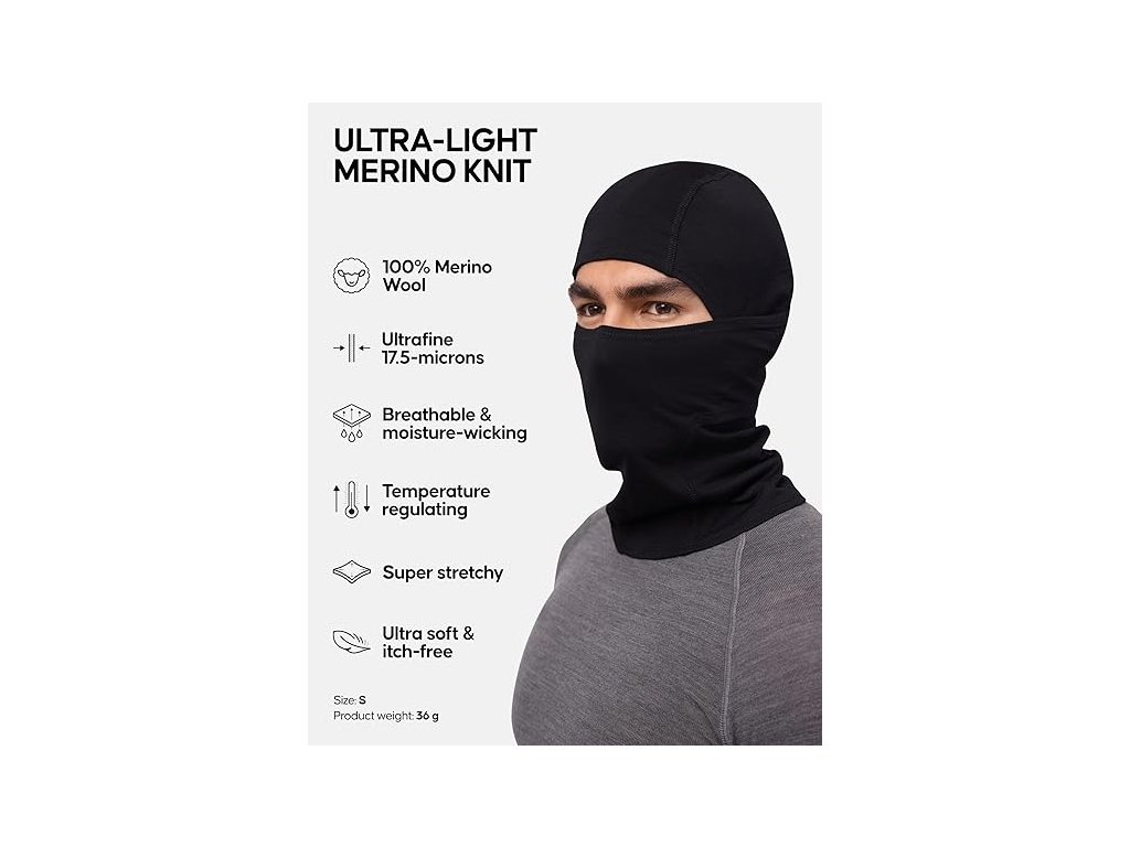 Funkční design umožňuje několik způsobů nošení podle aktuální potřeby ochrany – od úplného zakrytí nosu až po stažení pod bradu pro zahřátí pouze čela, uší a krku. Kukla je velmi skladná a snadno se vejde do kapsy nebo batohu. Údržba je snadná díky možnosti praní v pračce na jemný cyklus, přičemž materiál si zachovává své izolační vlastnosti i při fyzické aktivitě, kdy efektivně odvádí pot a udržuje tělo v suchu.