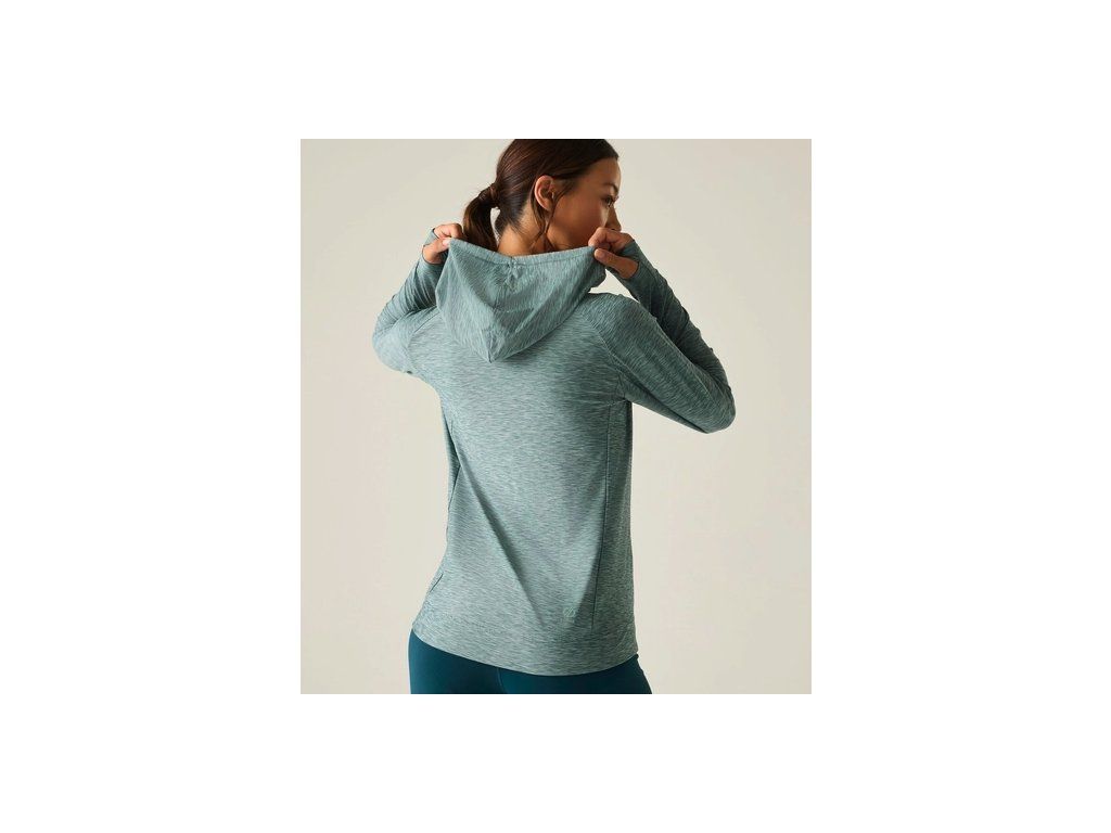 Dámská sportovní mikina s kapucí, která odvádí pot, rychle schne a poskytuje ochranu proti UV záření. Ideální pro sport i každodenní pohyb.