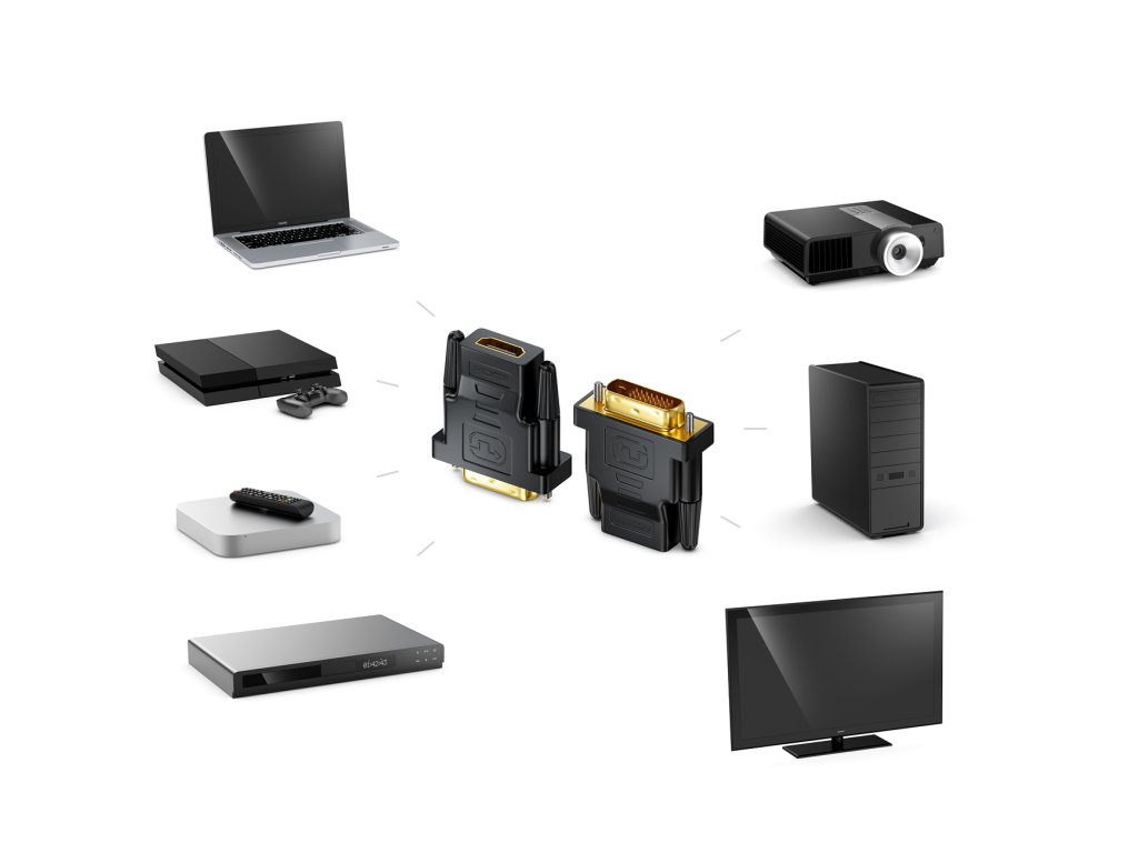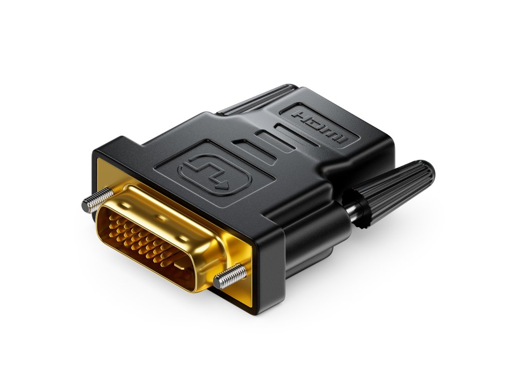 Adaptér je vybaven přesně vyrobenou HDMI samicí (zásuvkou), která zajišťuje perfektní a pevné spojení s vaším HDMI kabelem bez rizika vyklouznutí. Na druhé straně se nachází DVI samec (zástrčka) typu DVI-D (24+1 pin), kompatibilní se všemi zařízeními s DVI-D portem.