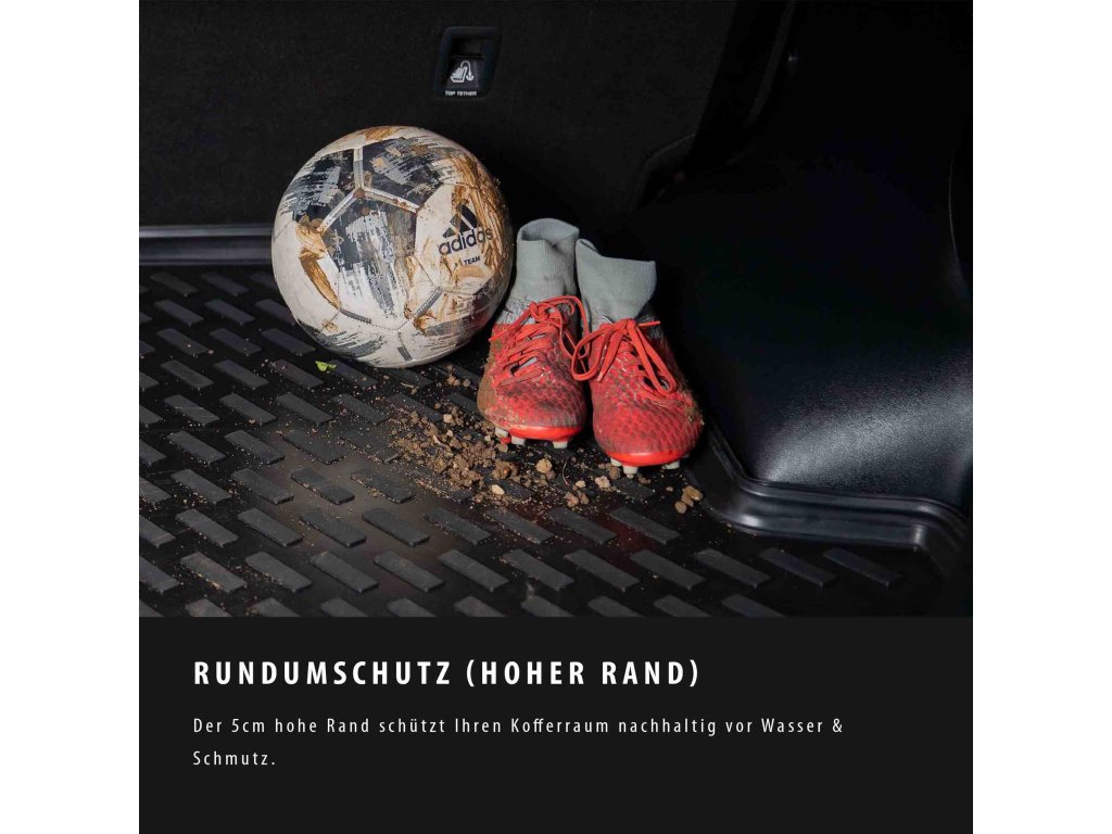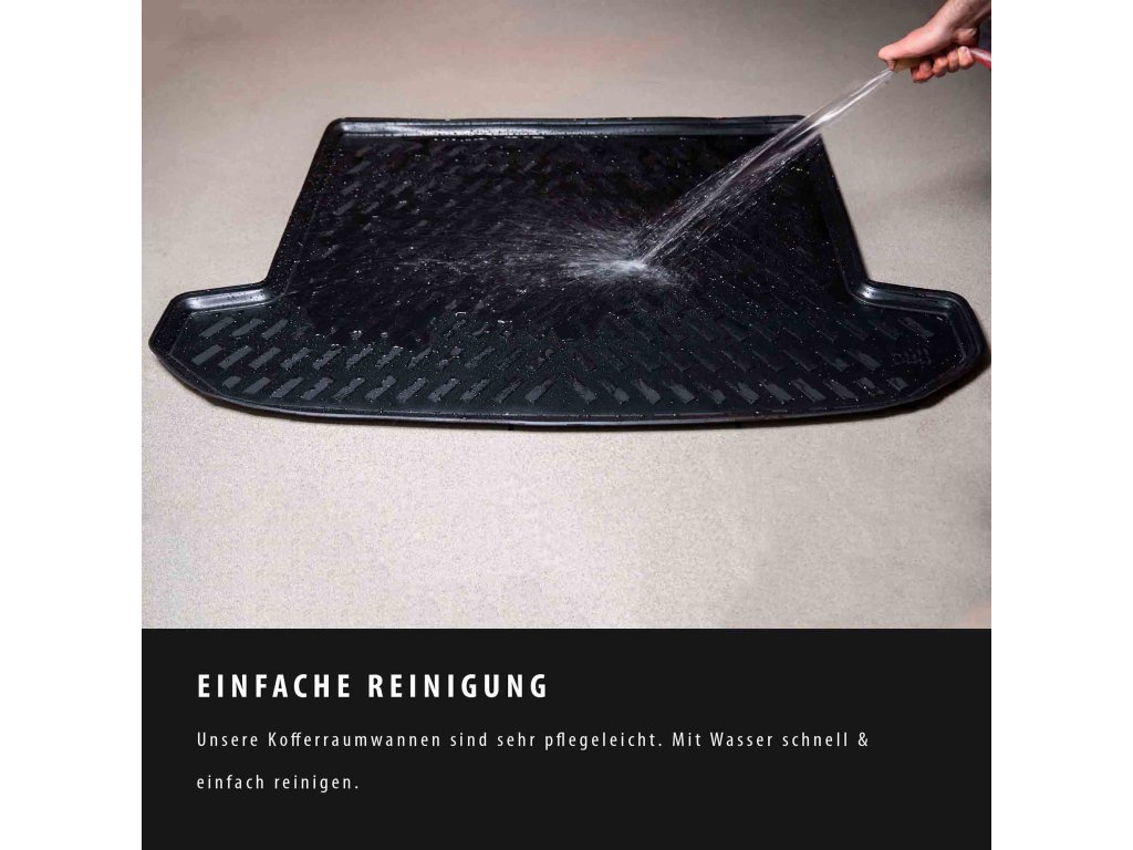 Celoplošná ochrana: Díky extra vysokému okraji (cca 5 cm) poskytuje vana komplexní ochranu proti vodě, blátu, špíně a dalším nečistotám, které by mohly poškodit koberec v kufru.