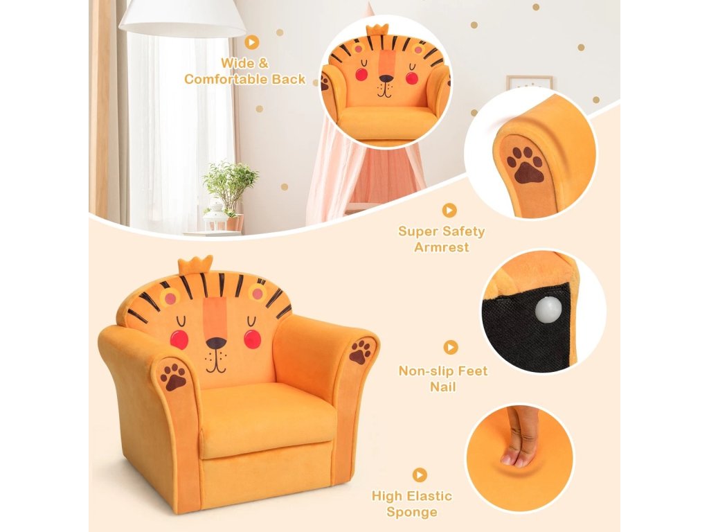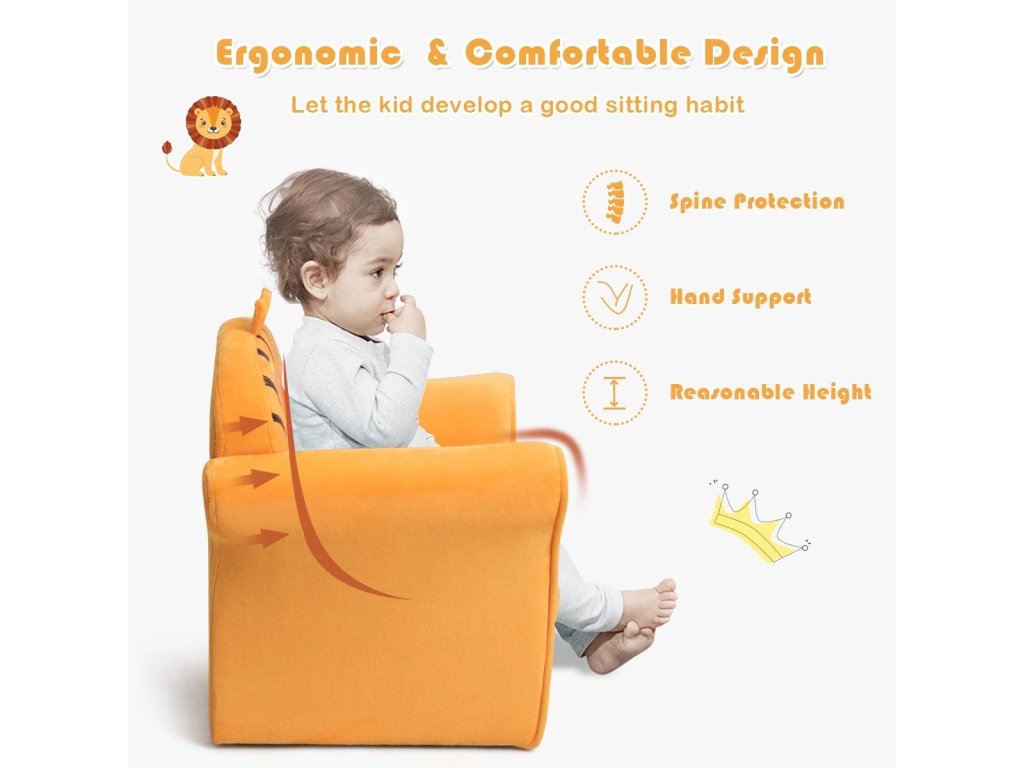 Konstrukce pohovky je vyrobena z vysoce kvalitního eukalyptového dřeva, které zajišťuje pevnost a nosnost až 50 kg. Povrch tvoří velmi měkký samet příjemný na dotek, zatímco výplň z pružné houby 20D zaručuje maximální pohodlí. Bezpečnost dětí je prioritou, proto křeslo nemá žádné ostré hrany a je vybaveno protiskluzovými podložkami na nožkách, které zabraňují převrácení. Lehká konstrukce navíc umožňuje dětem, aby si svůj nábytek samy snadno přemístily.