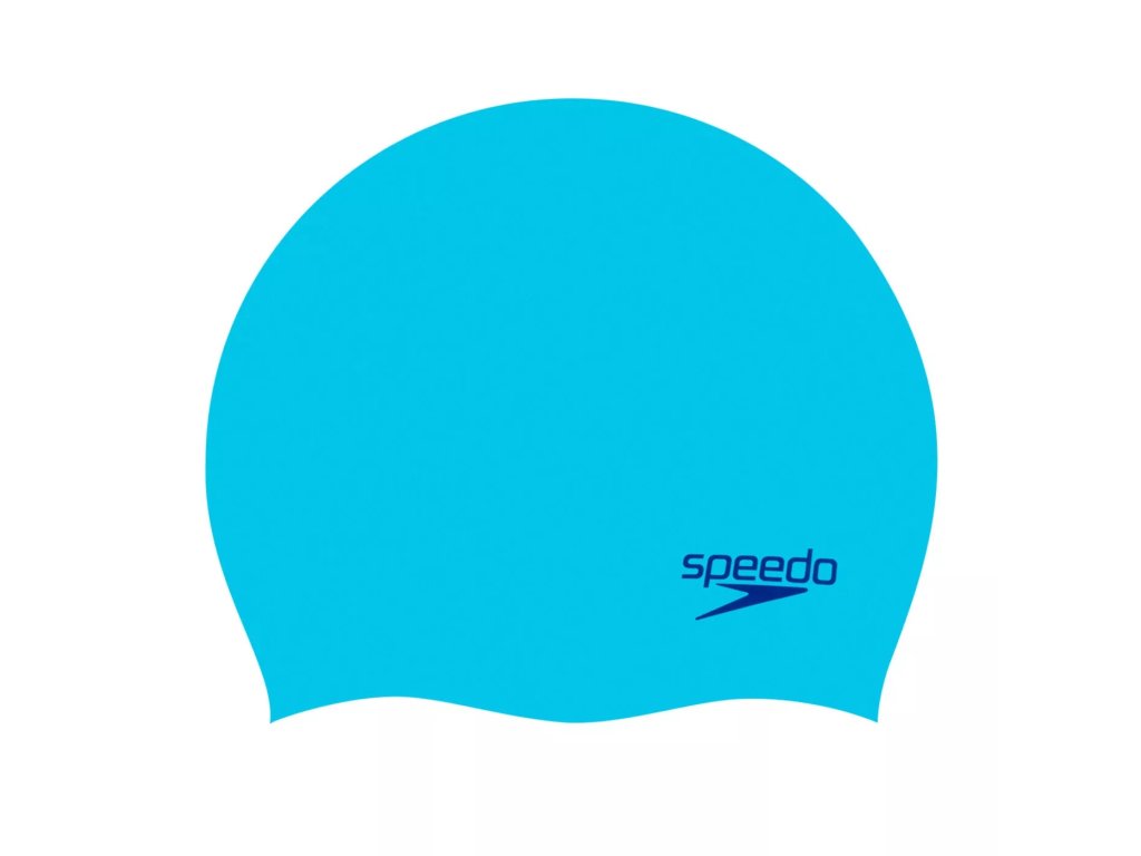 Dětské silikonové plavecké čepice Speedo Plain Moulded Silicone Junior v modré. Ergonomický 3D design, velikost pro děti 3-7 let (obvod hlavy 43-53 cm).