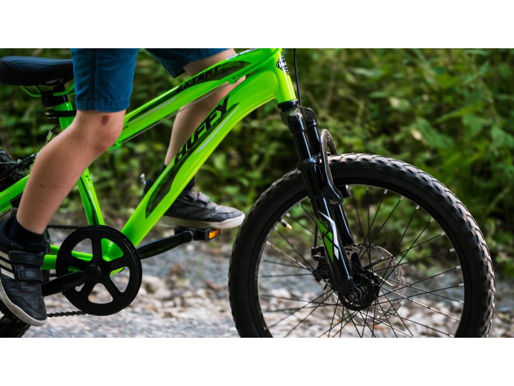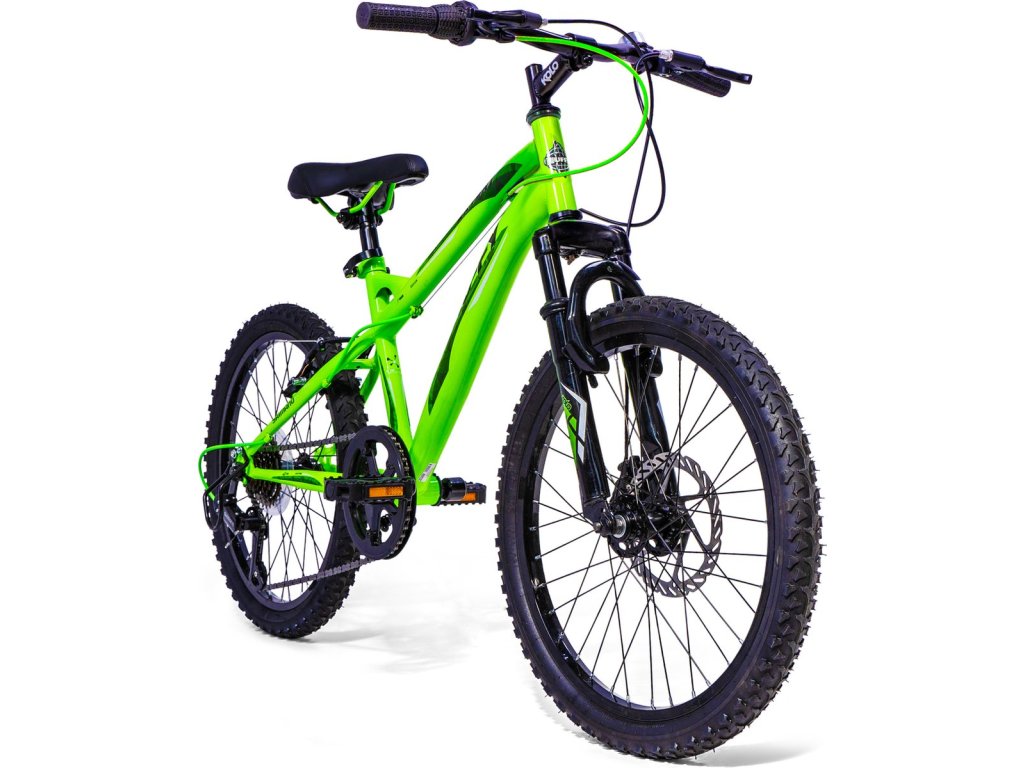 Zářivě zelené dětské horské kolo Huffy Extent s 20palcovými koly je ideální pro chlapce a dívky ve věku 6 až 11 let. Kolo je vybaveno přední odpruženou vidlicí a 6stupňovým řazením pro plynulou jízdu v terénu i po silnici.