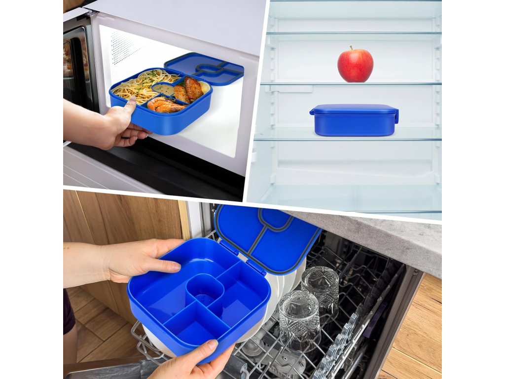4 Uzavřené Přihrádky: Umožňuje přehledné rozdělení jídla (ovoce, maso, zelenina) do samostatných sekcí.