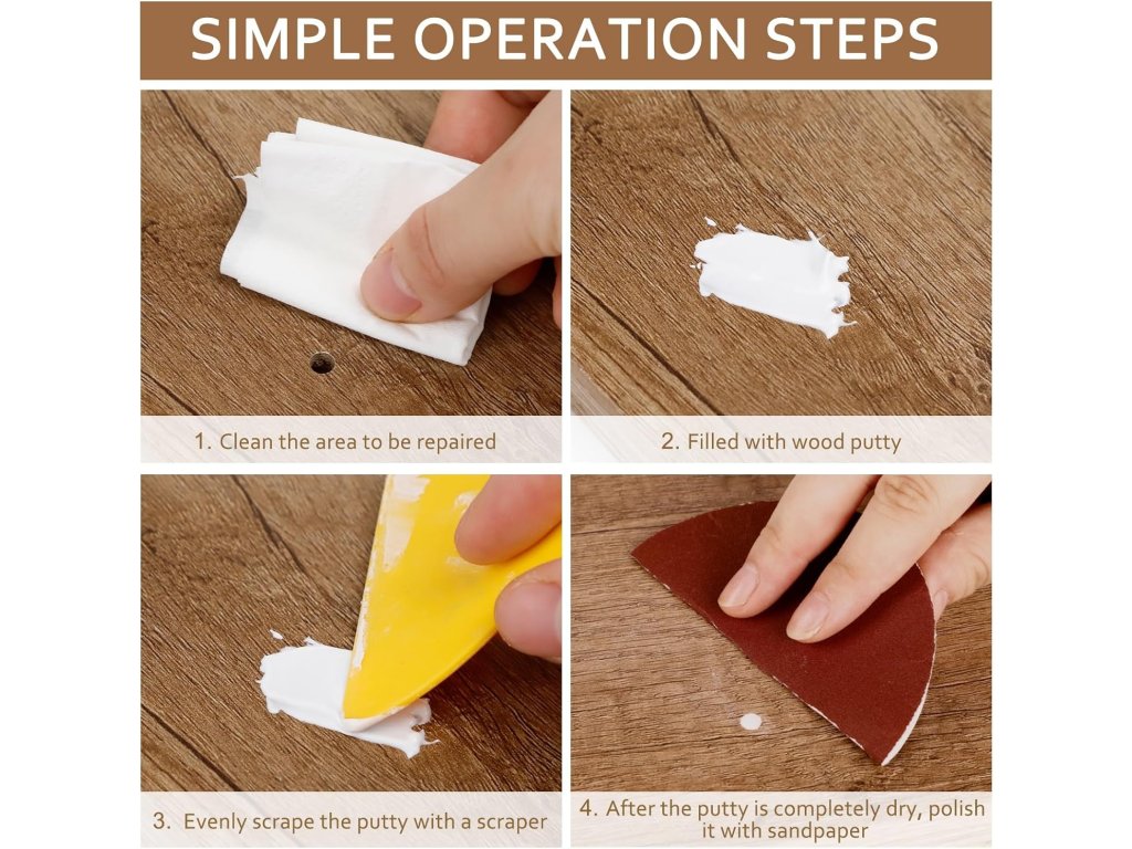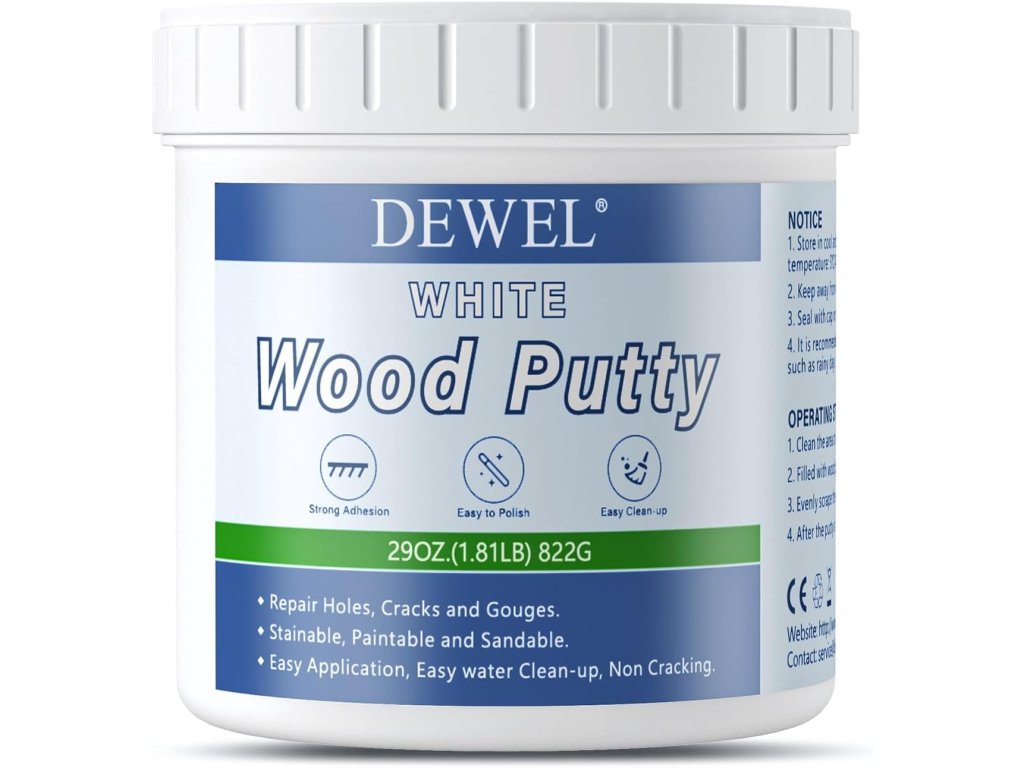 S touhle sadou od DEWEL snadno opravíš poškozené dřevěné povrchy! Obsahuje velkou nádobu bílého tmelu na dřevo (822 g), dvě plastové špachtle, dva brusné papíry a jednorázové rukavice. Tmel je vyrobený z netoxických přírodních složek a má skvělou konzistenci. Můžeš ho brousit, mořit, natírat, dobře drží a snadno se čistí vodou. Je ideální pro opravu prasklin, děr, škrábanců, zakrytí graffiti nebo skvrn na nábytku, podlahách, skříních, stolech, dveřích a dalších dřevěných površích. Můžeš ho také smíchat s pigmenty, tónovacími prostředky nebo barvivy, abys dosáhl/a požadovaného odstínu. Použití je jednoduché – nanes tmel na poškozené místo, setři přebytek a nech ho přirozeně uschnout.