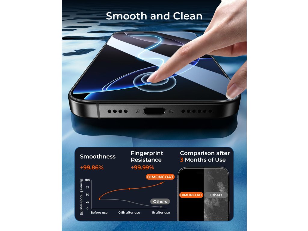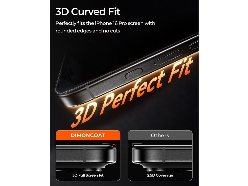 DIMONCOAT 4x tvrzené sklo pro iPhone 16 Pro (6.3"), automatická kalibrace, 10x vojenská ochrana, 9H+, HD čiré, bez bublin.