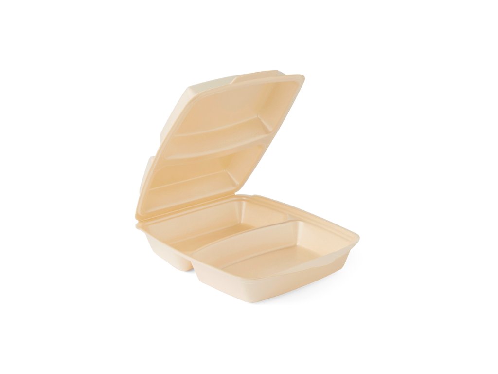 Boxy jsou ideální pro restaurace cateringové služby nebo jiné provozy kde je potřeba bezpečně a hygienicky zabalit jídlo s sebou. Boxy jsou vyrobeny z XPS který je známý svými izolačními vlastnostmi. Barva je Champagne. Box má dvě oddělené komory což umožňuje balení hlavního jídla a přílohy bez smíchání. Rozměry produktu jsou: šířka 220 mm výška 75 mm a délka 285 mm. Počet v balení: 4x50 kusu.