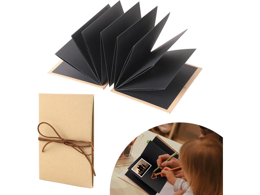 DIY skládací fotoalbum a scrapbook černé 21 x 15 cm 18 stran