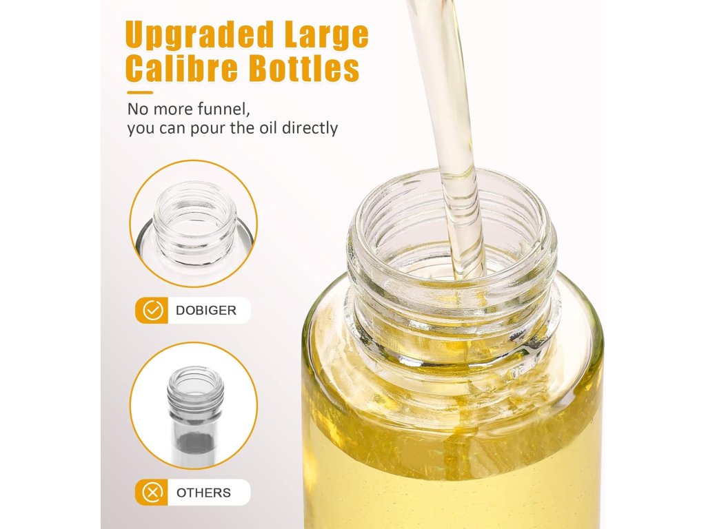 Skleněná sada rozprašovačů značky Dobiger je ideálním pomocníkem pro moderní kuchyni, zejména při používání horkovzdušných fritéz (Air Fryer), grilování nebo přípravě salátů. Nádoby jsou vyrobeny z potravinářského skla a odolného polypropylenu bez obsahu BPA, což zaručuje zdravotní nezávadnost a bezpečnou manipulaci s potravinami. Široké hrdlo lahve umožňuje snadné plnění tekutin bez nutnosti použití nálevky a průhledný design zajišťuje neustálý přehled o zbývajícím obsahu.