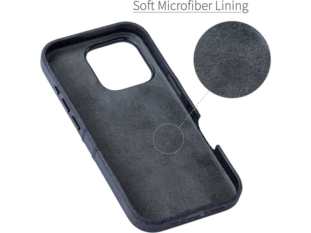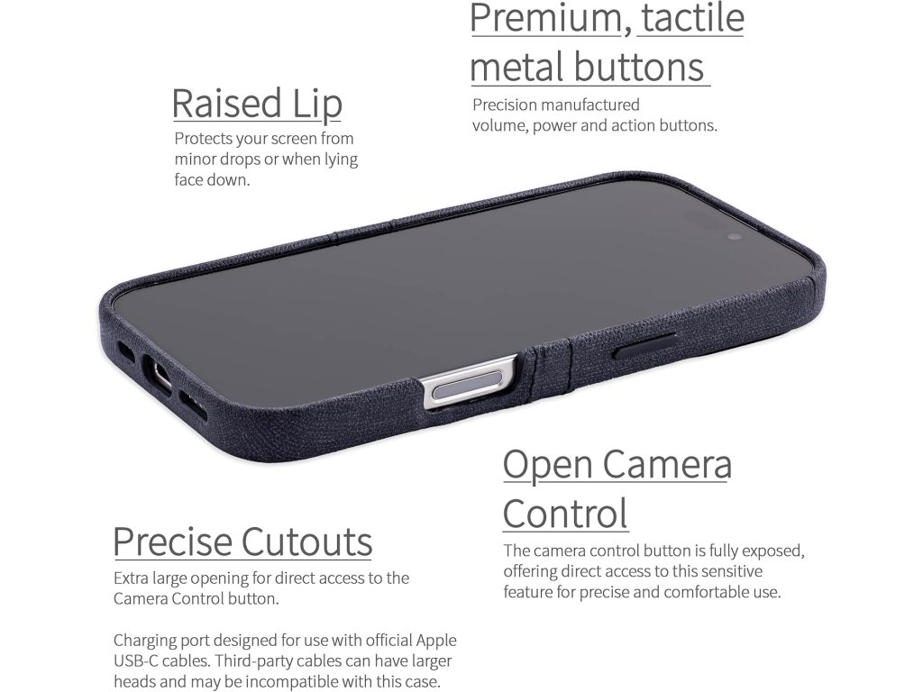Prémiový design a ochrana: Toto pouzdro pro iPhone 16 Pro se pyšní tvrdou skořepinovou základnou obalenou v naší měkké, prémiové syntetické kůži ve stylu plátna, která poskytuje sofistikovaný vzhled a příjemný pocit na dotek. Vnitřní hladká mikrovláknová podšívka nabízí jemné místo pro váš telefon, zatímco hmatová kovová tlačítka na vnější straně zajišťují uspokojivou zpětnou vazbu.