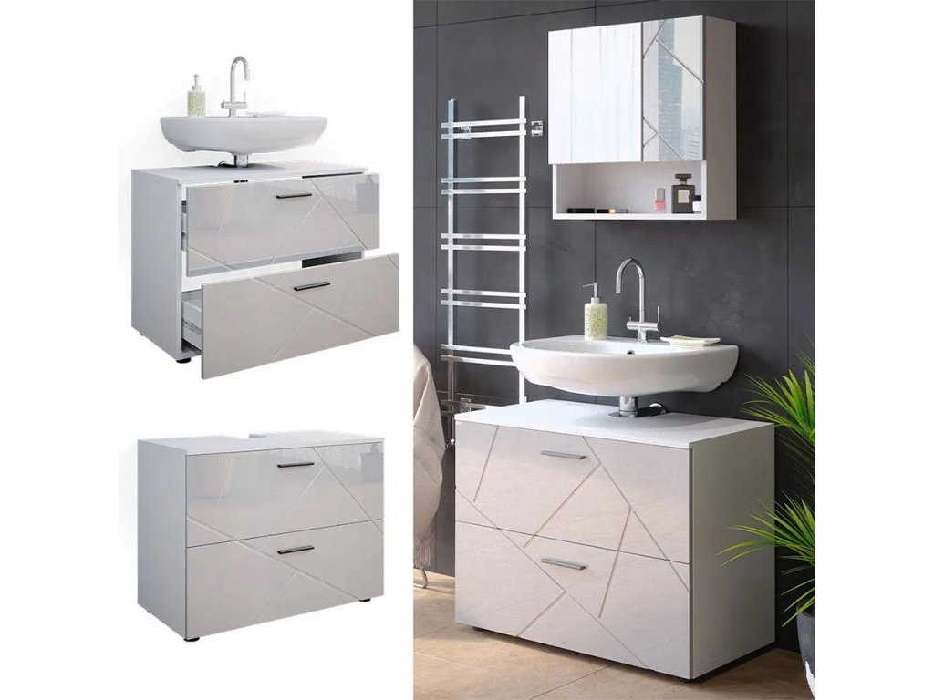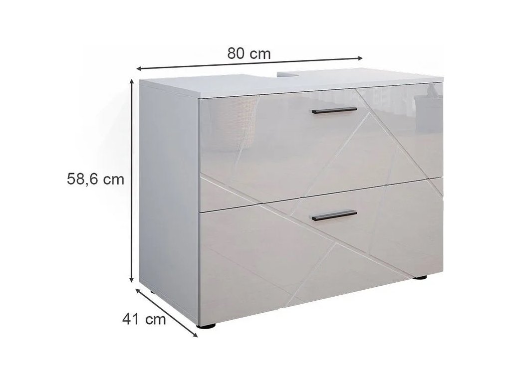 Dolní skříňka pod dřez Vicco Irma – 80 x 59 x 41 cm, bílá vysoký lesk