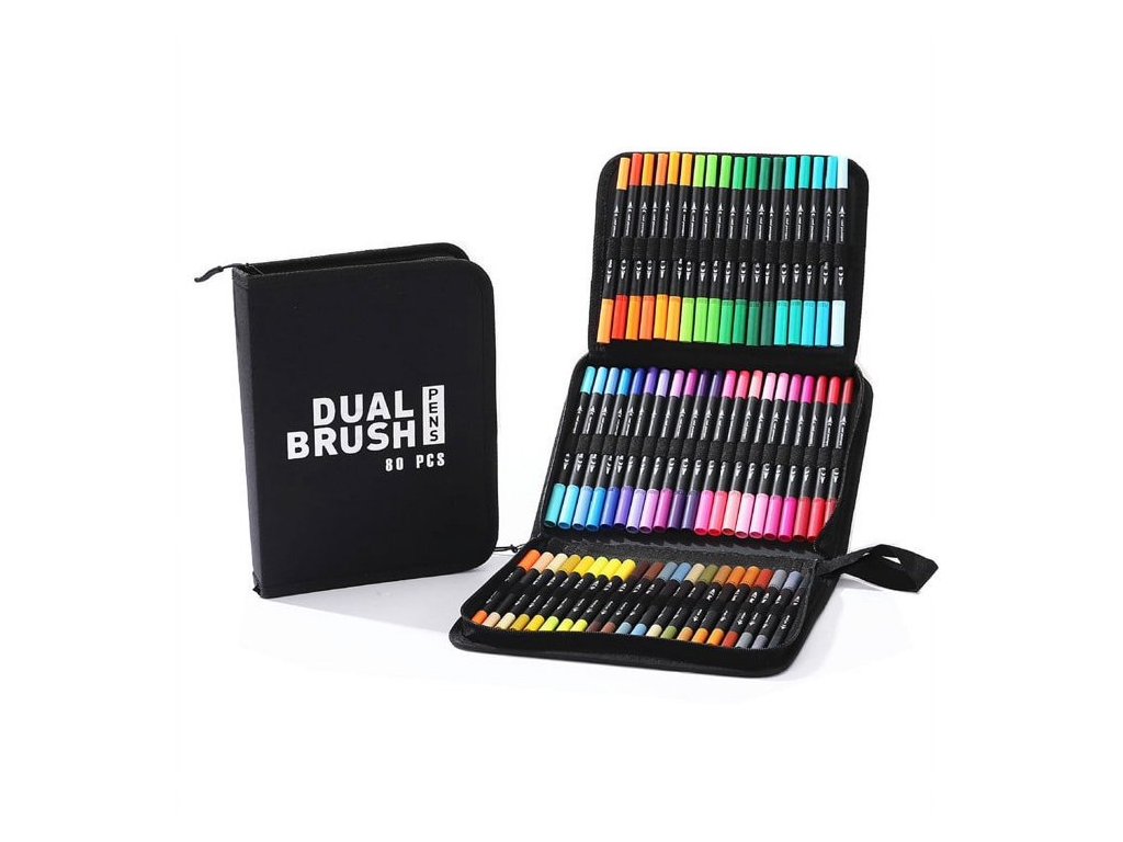 Sada 144 oboustranných akvarelových fixů Dual Brush Pens nabízí širokou škálu barev pro umělecké potřeby. Fixy mají na jednom konci měkký štětcový hrot pro malování a na druhém konci tenký hrot pro kontury a detaily. Jedná se o vodové markery ideální pro míchání a vytváření akvarelových efektů.