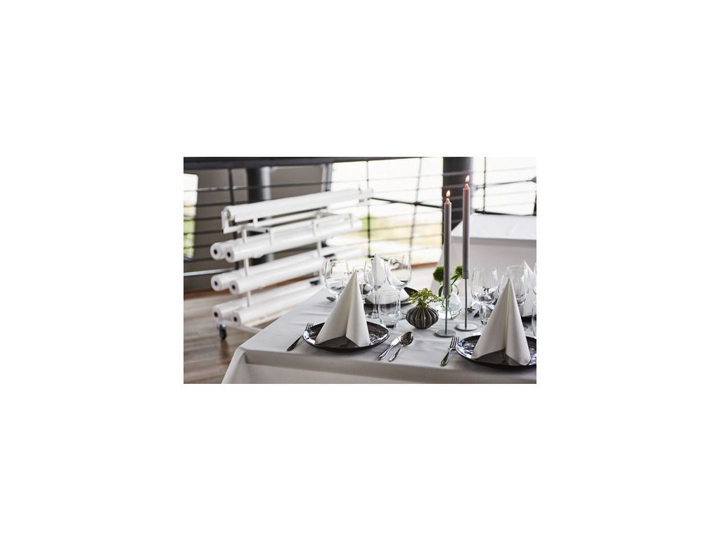 Ubrus je díky své struktuře odolný a zároveň měkký na dotek. Bílá barva poskytuje univerzální základ pro další dekorace a prostírání v libovolném stylu. Výroba podléhá ekologickým standardům, což potvrzuje certifikace FSC pro odpovědné lesní hospodaření. Role je snadno manipulovatelná a umožňuje rychlou přípravu stolů pro velké skupiny hostů.