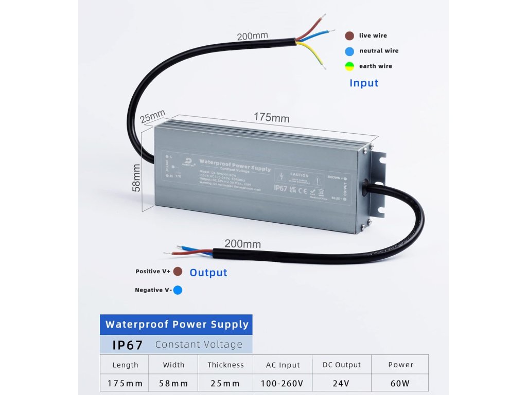 Dusktec 24V LED Driver IP67 60W napájecí zdroj