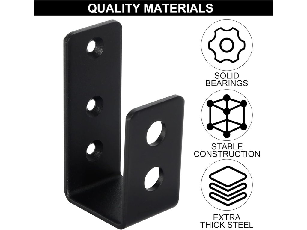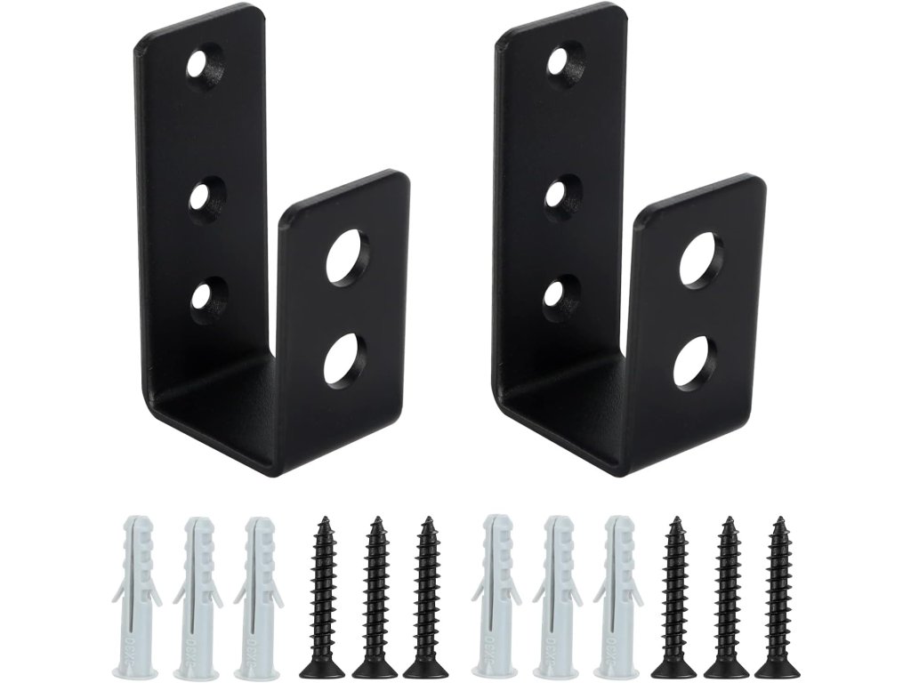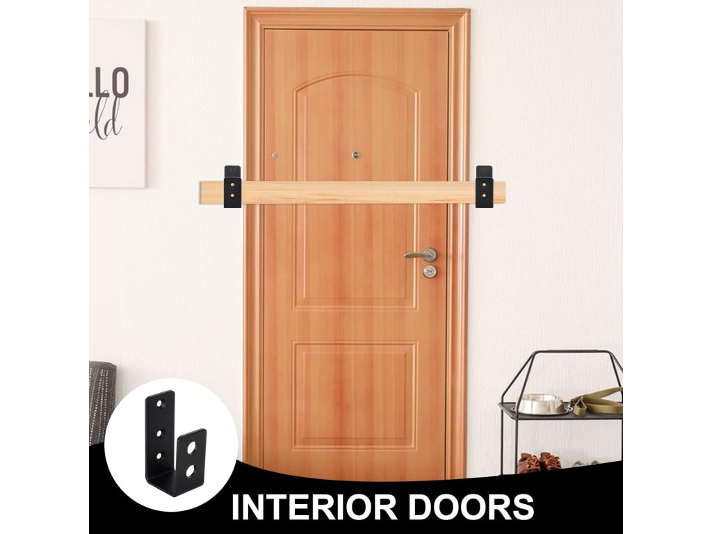 2 kusy robustních ocelových držáků ve tvaru U pro dveřní barikádu (pro dřevo 2x4). Matně černý povrch, snadná instalace se šrouby. Vhodné pro zabezpečení dveří, vrat, stodol, zahradních domků a plotů.