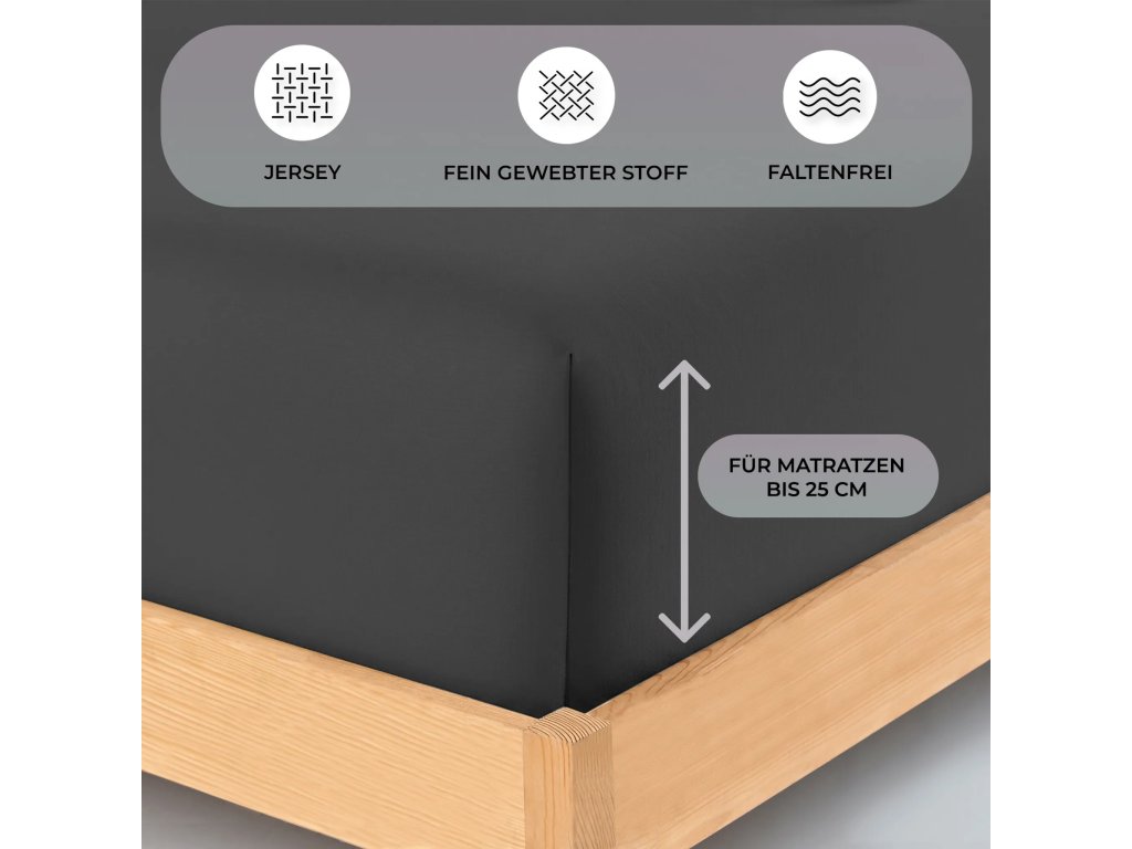 Jedná se o sadu dvou žerzejových prostěradel v antracitové barvě, která jsou vyrobena ze 100% bavlny a jsou vhodná pro matrace s výškou až 25 cm.