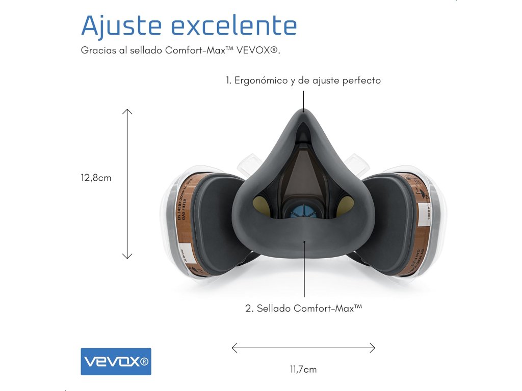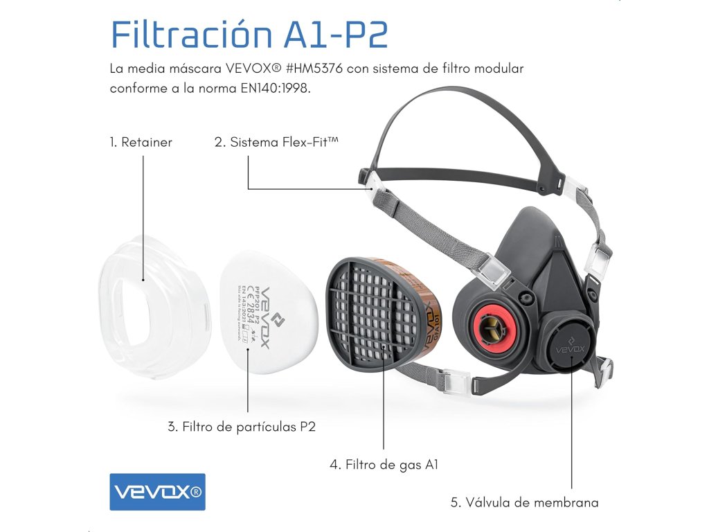 Klíčové vlastnosti Značka: Vevox Typ produktu: Dýchací maska s filtrem Filtrace: A1P2 Barva: Šedá Vlastnosti: Ochrana proti plynům a prachu, pohodlné těsnění, nastavitelné popruhy