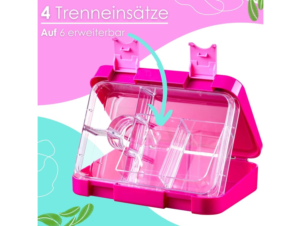 Vnitřní uspořádání boxu je velmi variabilní a nabízí 4 pevné přihrádky, které lze pomocí přiložené vložky rozšířit až na 6 oddělených sekcí. To umožňuje přehledné oddělení různých druhů potravin, od ovoce a zeleniny až po pečivo. Velkou výhodou je nepropustná konstrukce s vnitřním těsněním ve víku, která bezpečně udrží na svém místě i vlhké pochoutky, jako jsou jogurty nebo omáčky, aniž by došlo k jejich vytečení do tašky. Údržba je velmi snadná, box lze mýt v myčce nádobí při teplotě do 55 °C.