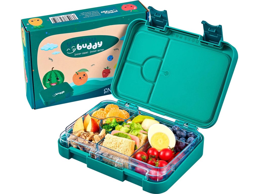 Ecosa Yummy Buddy Dětský box na svačinu s přihrádkami Petrol