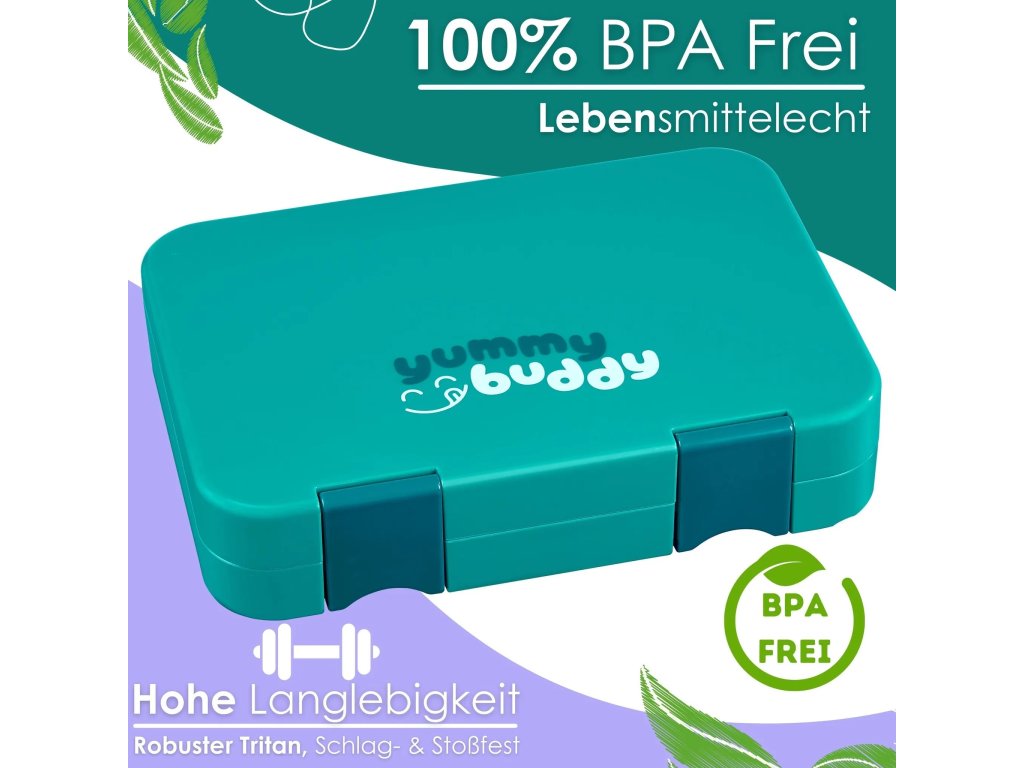 Rozsah dodávky: Box na svačinu Yummy Buddy Vložka s přihrádkou Vnitřní víko s těsněním Návod k obsluze v němčině