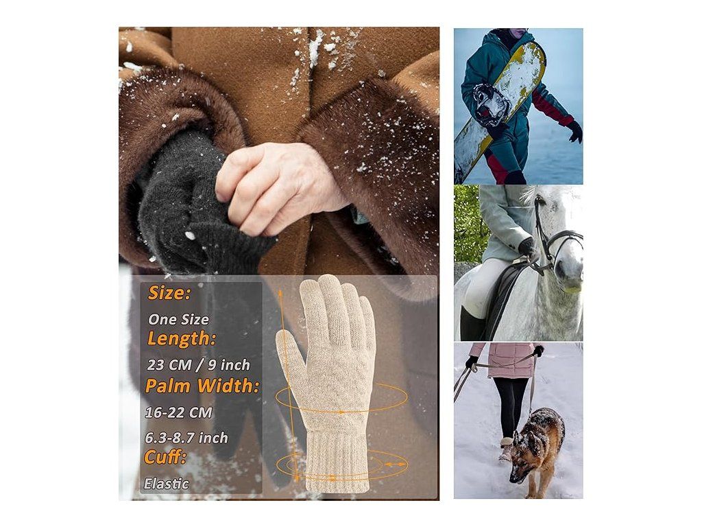 Rukavice ehsbuy jsou vyrobeny z dvouvrstvého materiálu s měkkou fleecovou podšívkou, která rychle zahřívá ruce a udržuje teplo i v chladném počasí. Pletený design je pružný a pohodlně se přizpůsobí většině rukou.