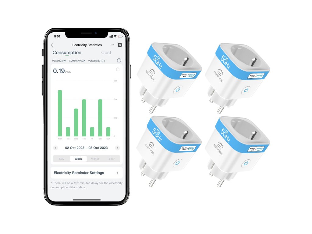 Chytré zásuvky Eightree představují moderní prvek pro správu domácí elektroniky s inovativní podporou 5GHz WiFi sítí, což zajišťuje rychlejší odezvu a vyšší stabilitu připojení ve srovnání s běžnými modely. Zásuvky jsou zároveň plně zpětně kompatibilní s tradičními 2,4GHz sítěmi. Hlavní předností je integrovaný monitor energie, který uživateli poskytuje přehled o aktuální spotřebě a odhadovaných nákladech na elektřinu. Data lze pro účely další analýzy nebo úsporných opatření snadno exportovat ve formátu PDF přes aplikaci Smart Life.